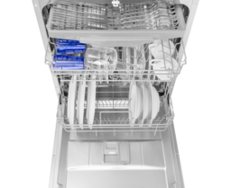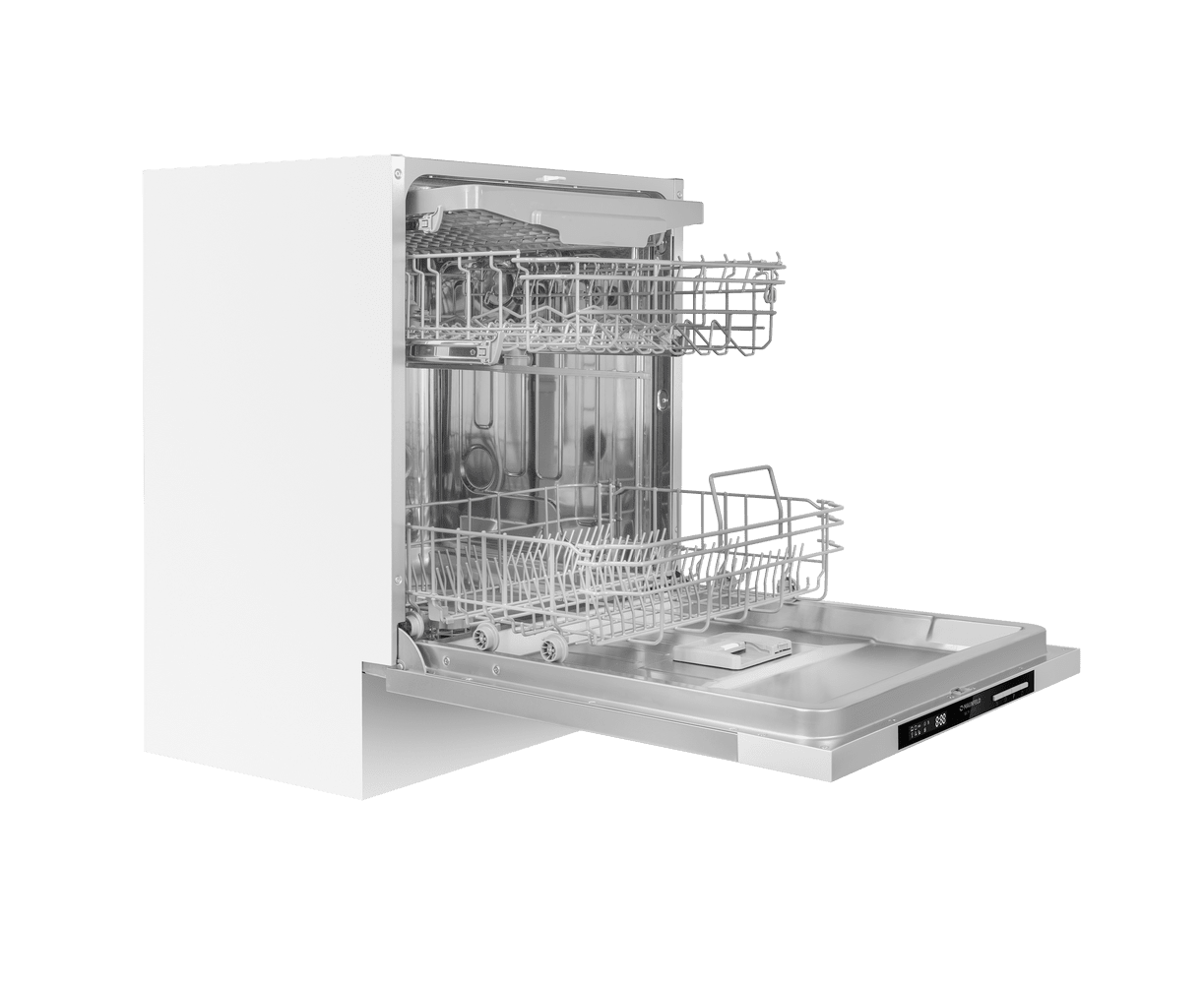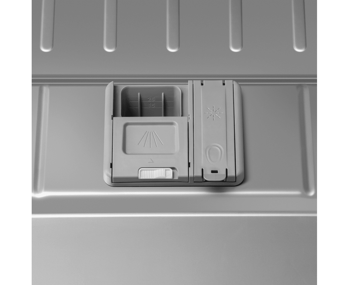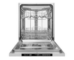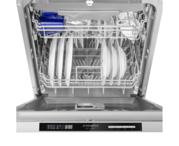 Электронное управление с дисплеем расположено в торце загрузочной дверцы. Функционал данной модели позволяет вам выбрать программу мойки, включить половинную загрузку, выставить время отсрочки старта (1-24 часов).