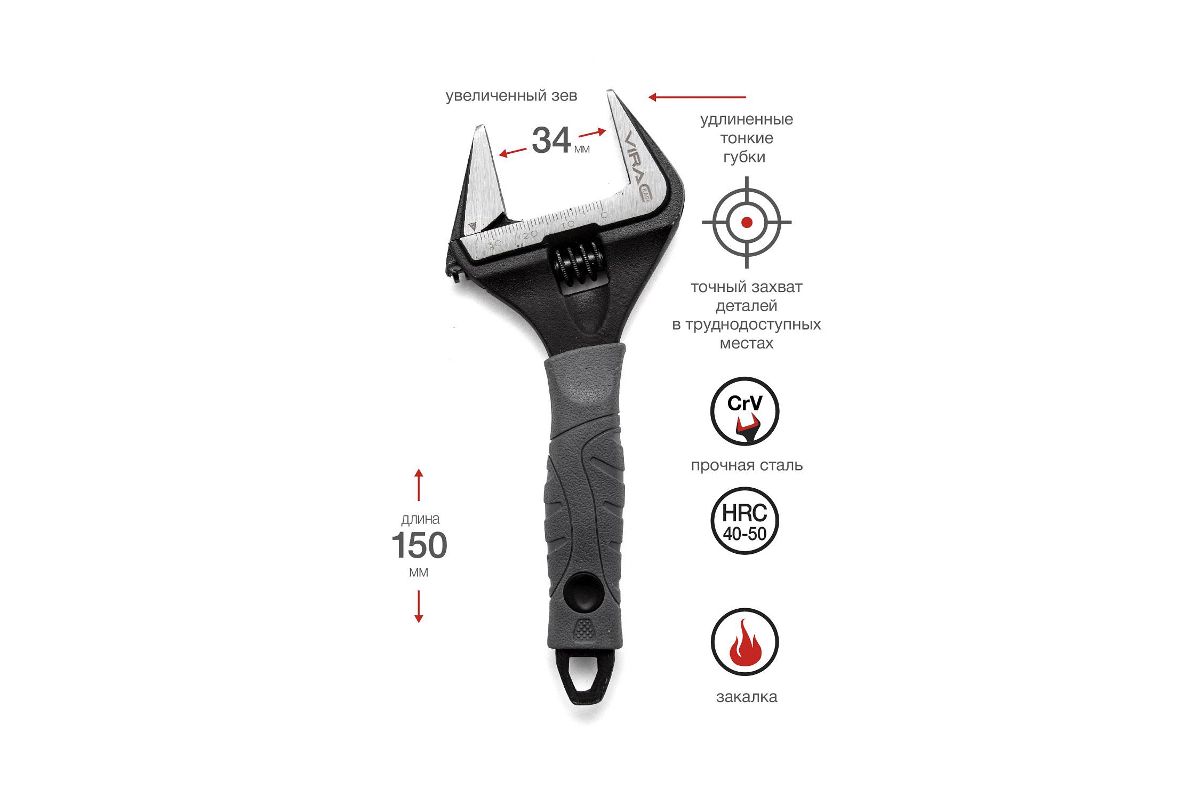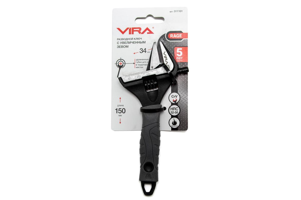 Ключ разводной VIRA 311101 с тонким губками, длина 150 мм, губки 35 мм