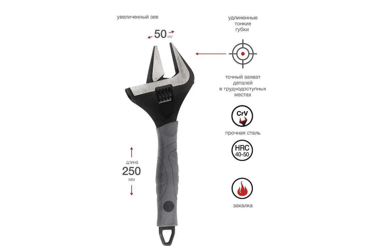Ключ разводной VIRA 311103 с тонким губками, длина 250 мм, губки 50 мм