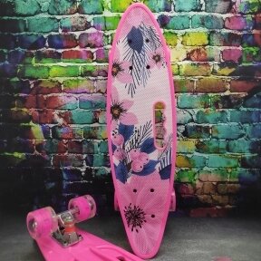 Скейт пенни Борд для детей 58x16см с ручкой для удобной переноски, светящиеся прозрачные колеса 55 мм Розовый Весна