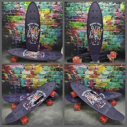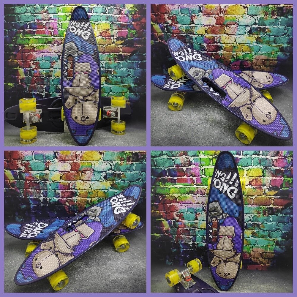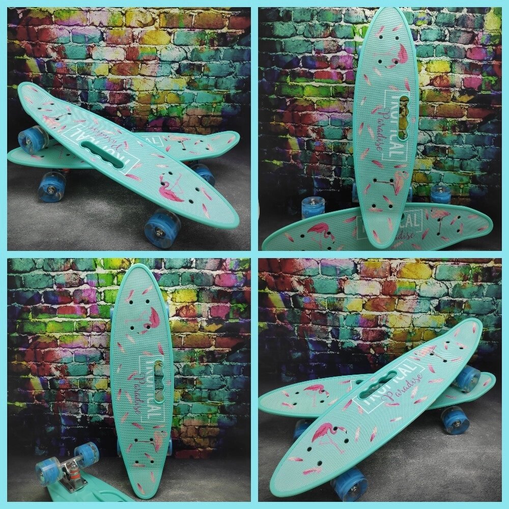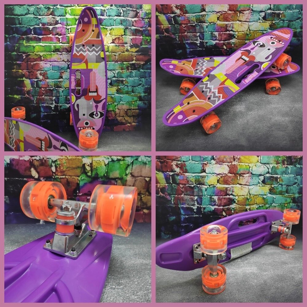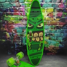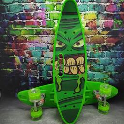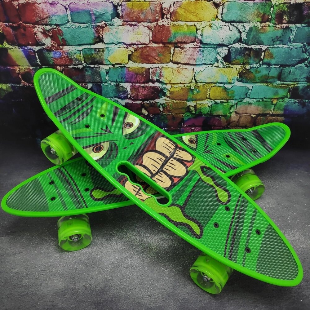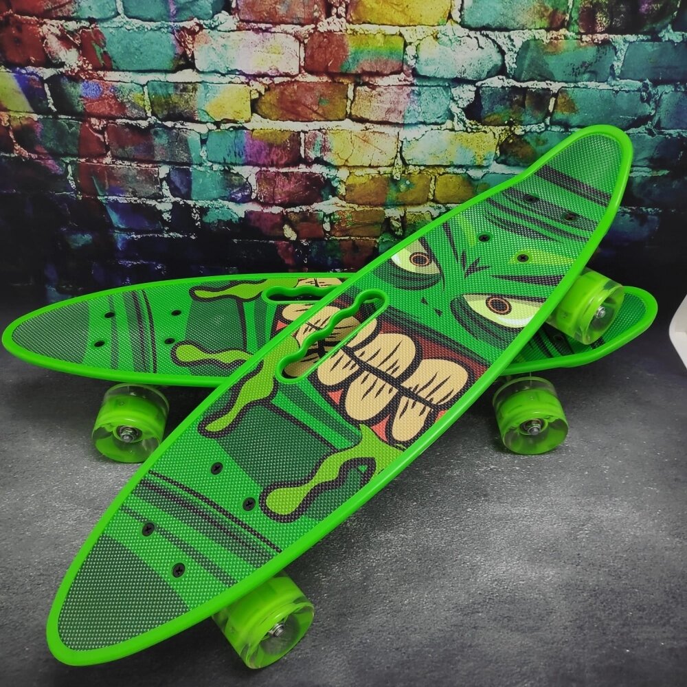Скейт пенни Борд для детей 58x16см с ручкой для удобной переноски, светящиеся прозрачные колеса 55 мм Халк