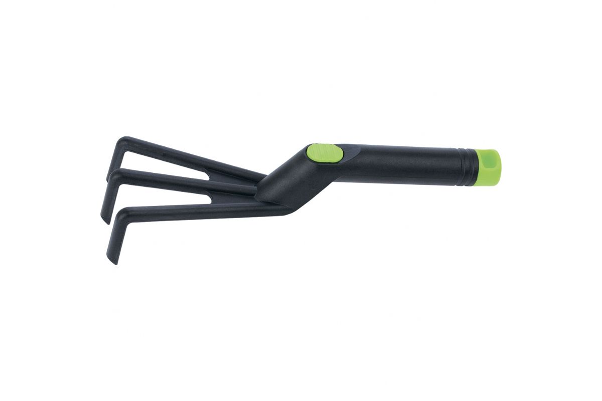 Рыхлитель 3-зубый. Ширина рабочей части 80 мм, общая длина 275 мм. Предназначен для рыхления и аэрации почвы на небольших грядках и клумбах. Рабочая часть выполнена из прочного нейлона. На рукоятке расположен рифленый упор для большого пальца. По окончании работы необходимо очистить инструмент от остатков грунта.