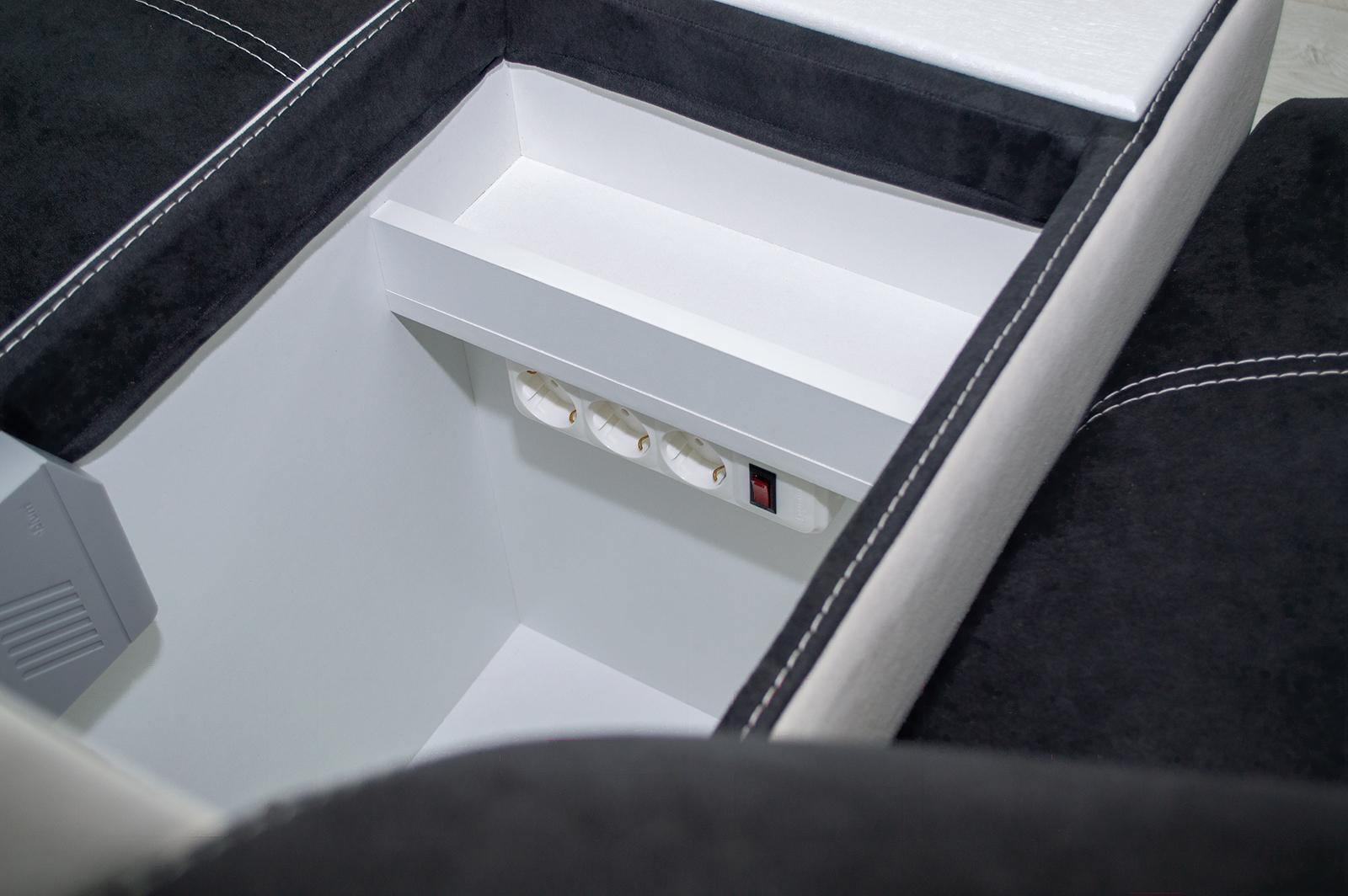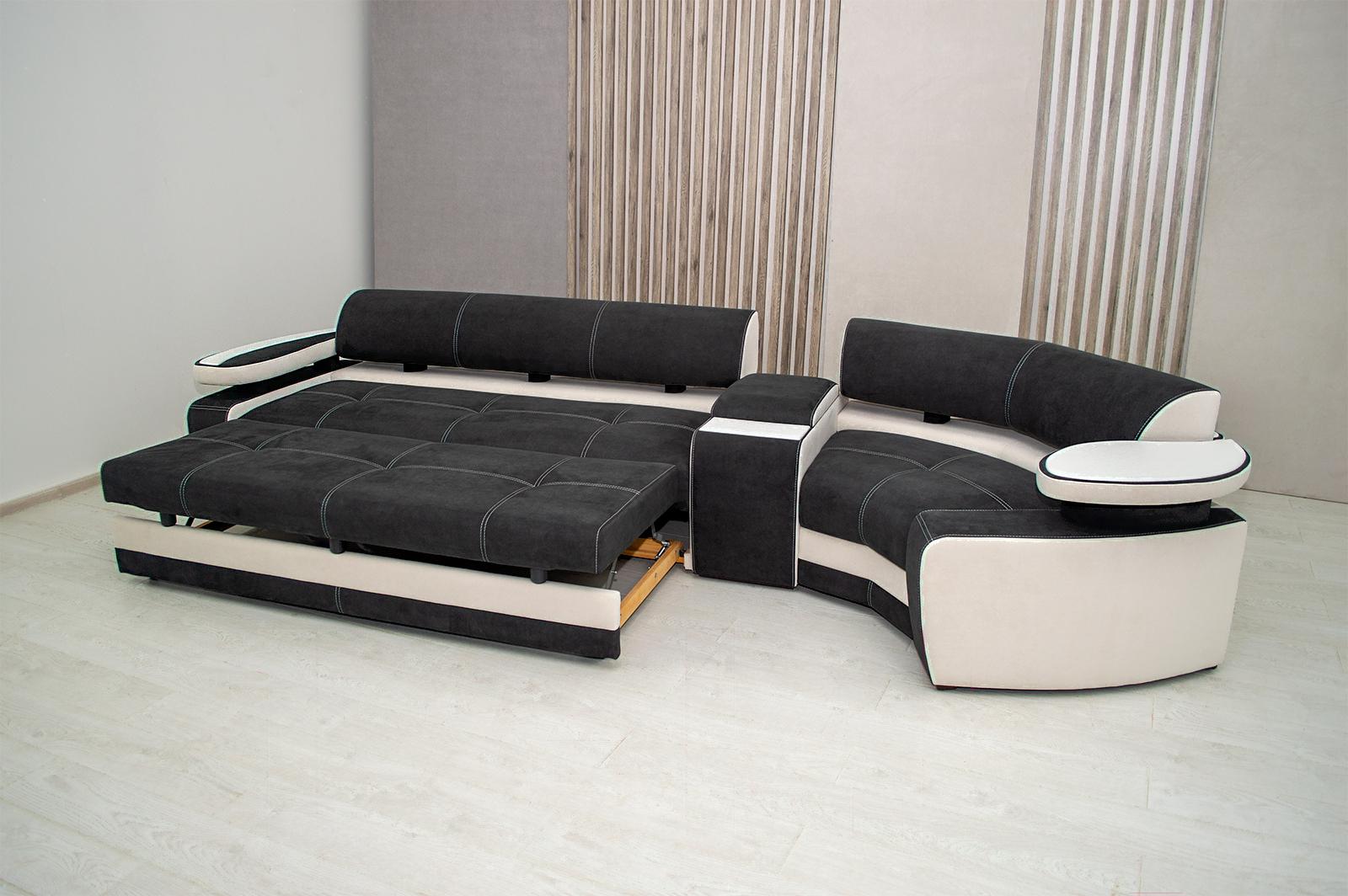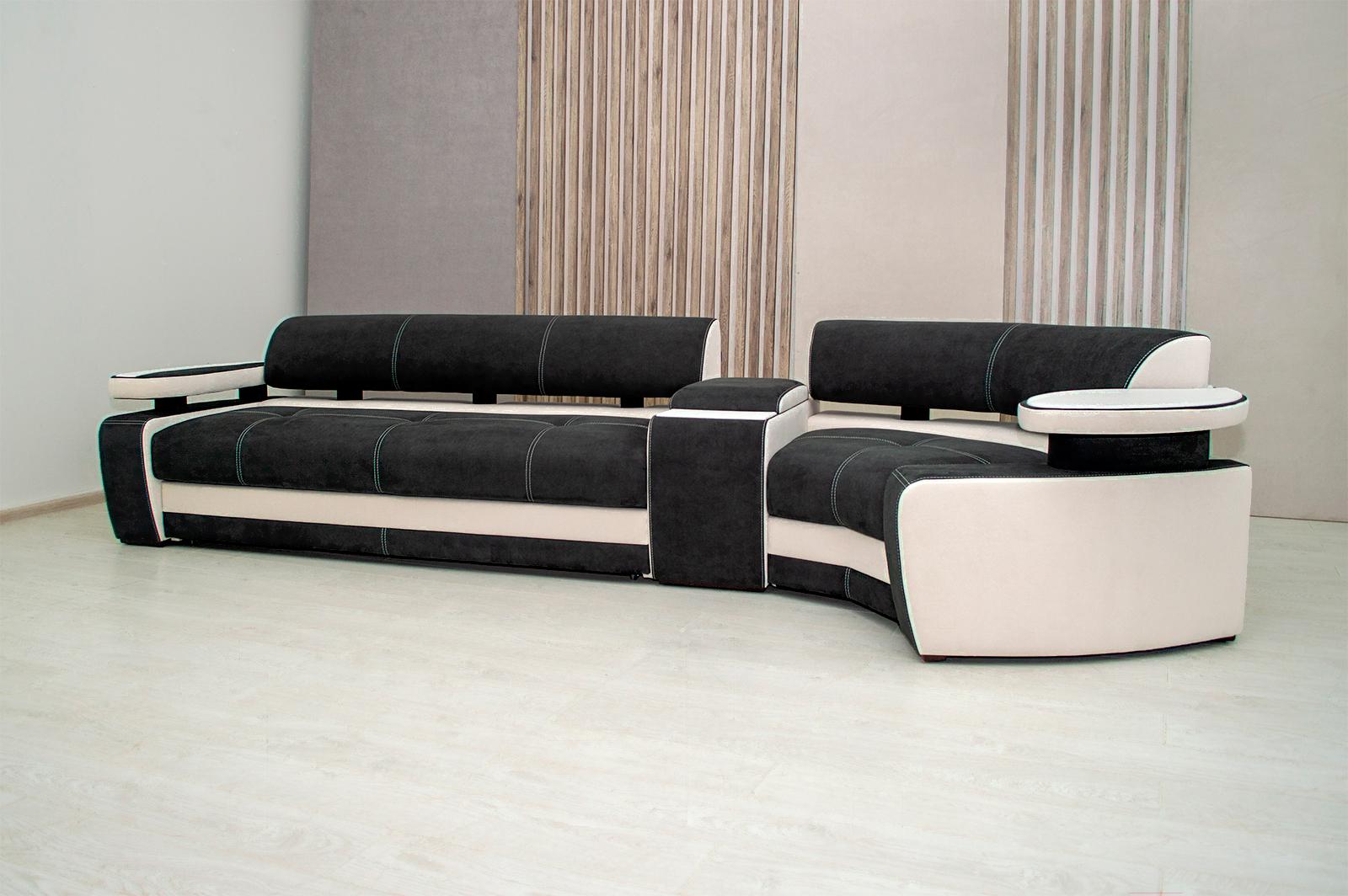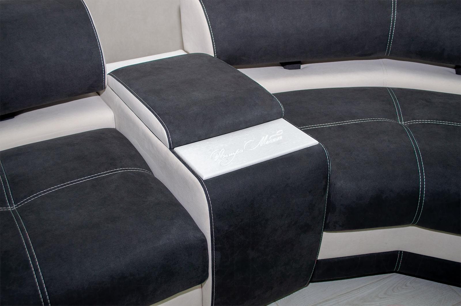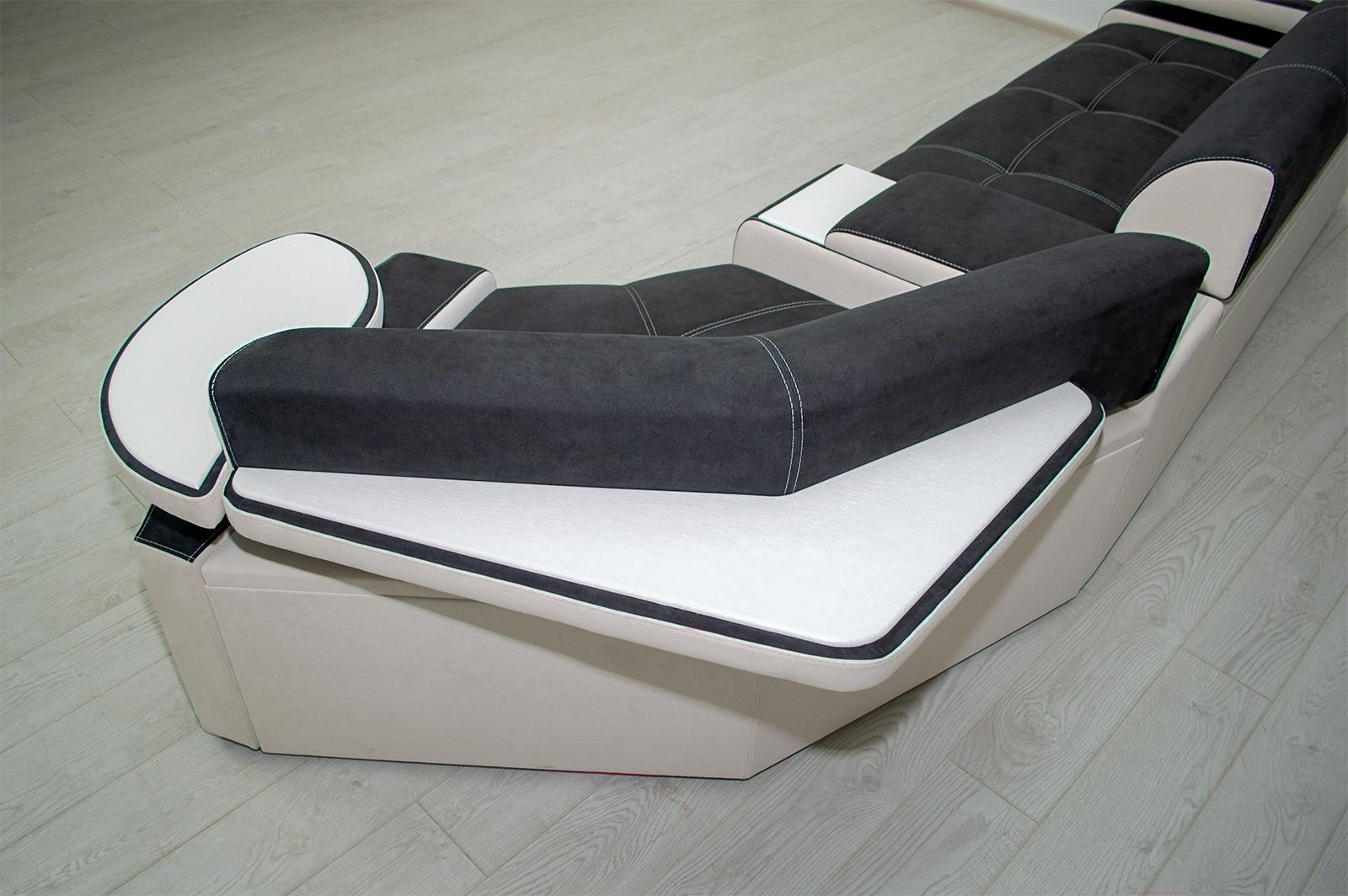 Диван угловой Петрамебель Марсель левый (искусственная замша темно-серый/велюр белый)