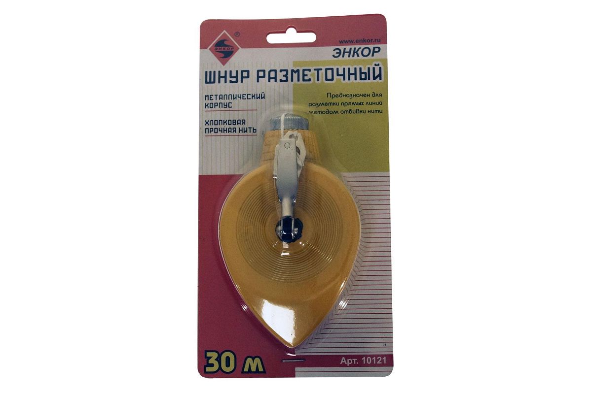 Шнур ЭНКОР 10121 разметочный металлический корпус 30м крючок, АBS-металл, 30 м, удобная рукоять