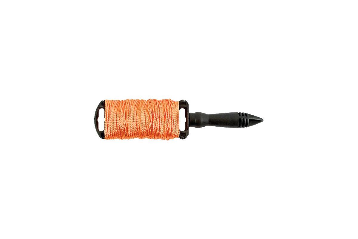 На катушке. Применяется в качестве ориентира при кладке кирпича, монтаже строительных конструкций , а также других строительных, хозяйственных, земельных работах. Материал: нейлоновый шнур, пластиковая вращающаяся катушка.