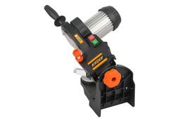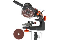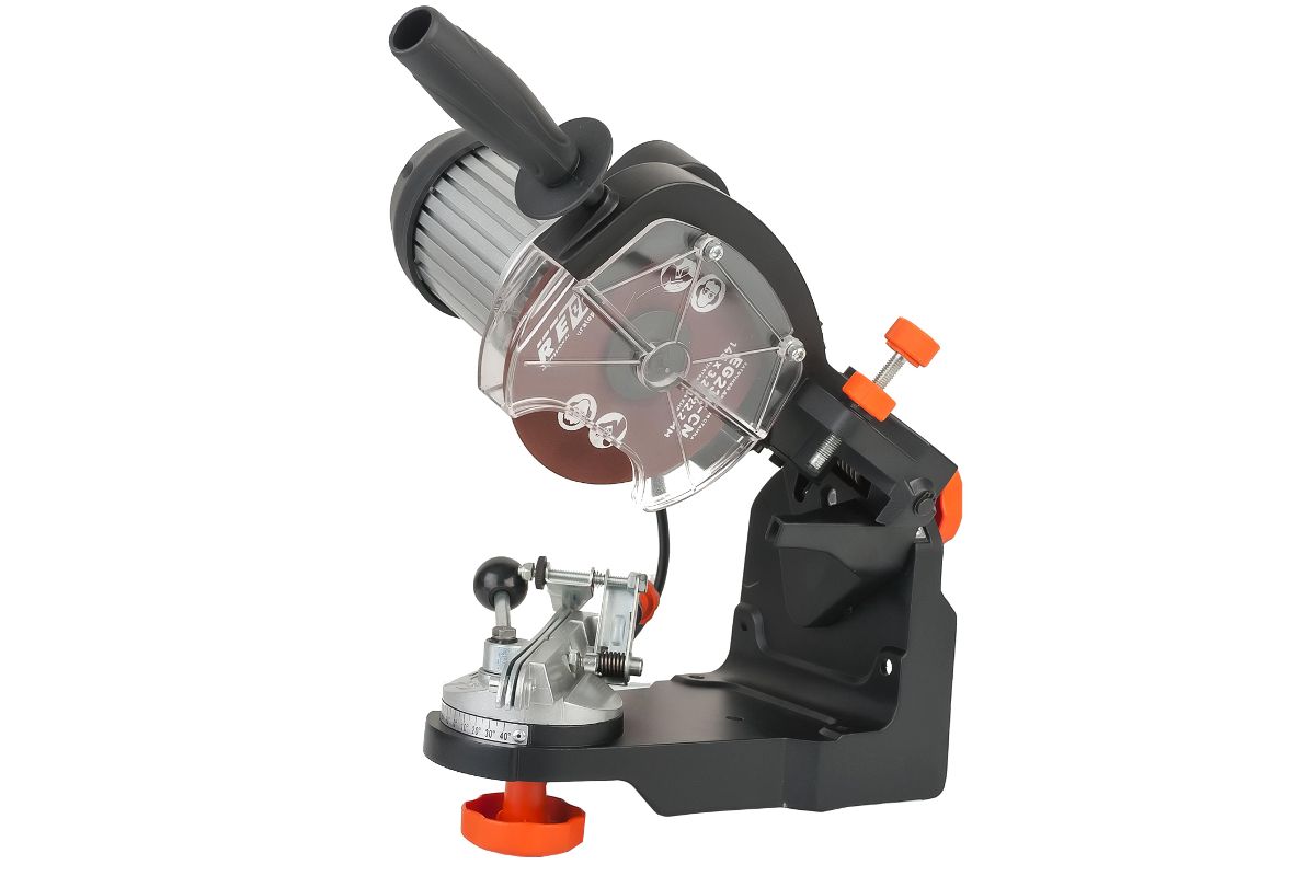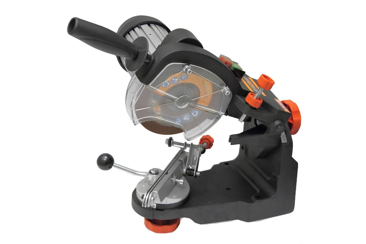Для профессиональной заточки пильных цепей отлично подойдет заточной станок REZER EG-235-CN. Снабженный тепловой защитой двигатель имеет мощность 235 Вт. Шпиндель с посадочным диаметром 22 мм вращается со скоростью 3000 об/мин. Заточной узел подвижно закреплен на стойке основания и удерживается пружиной. Ход вниз ограничен регулировочным винтом. Вес станка 6,8 кг, упакованного изделия — 7,6 кг.