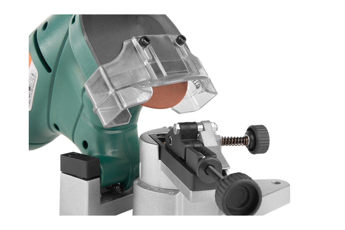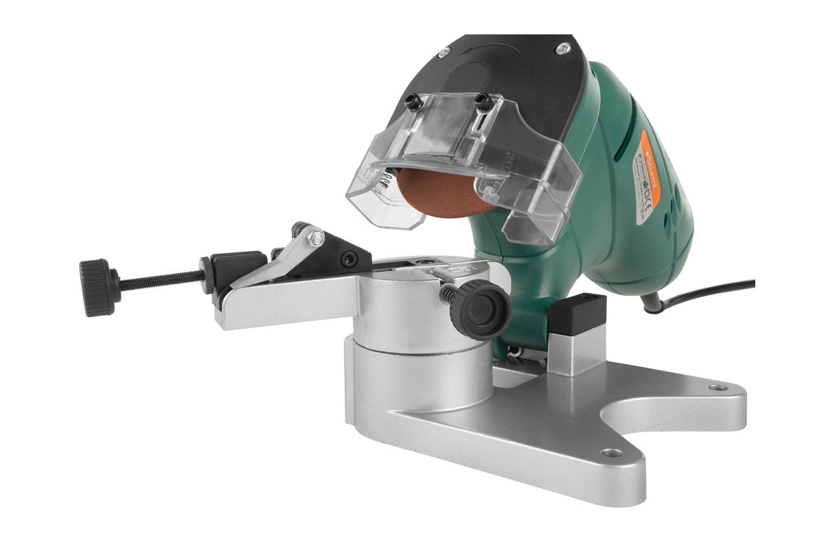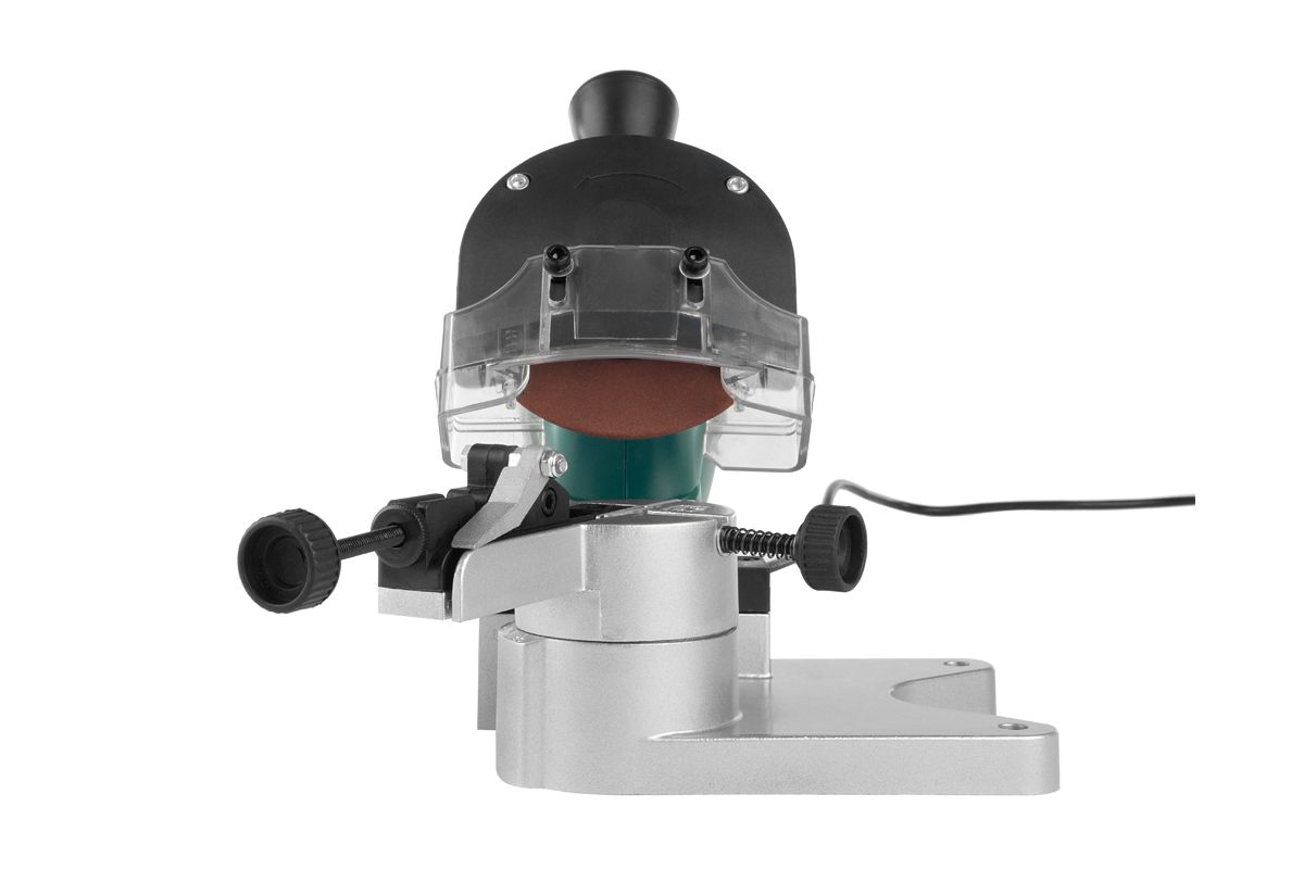 Оснащен электродвигателем мощностью 160 Вт, благодаря которому скорость вращения заточного диска достигает 3000 оборотов в минуту.