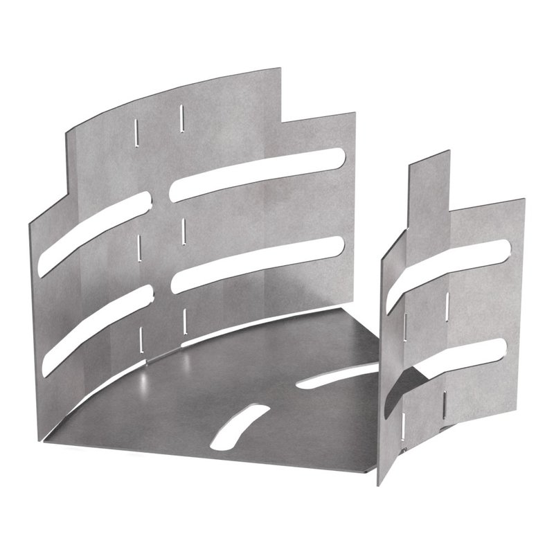 Обеспечивает плавный переход горизонтальной кабеленесущей линии между лотками металлическими в диапазоне от 0 до 45 градусов.