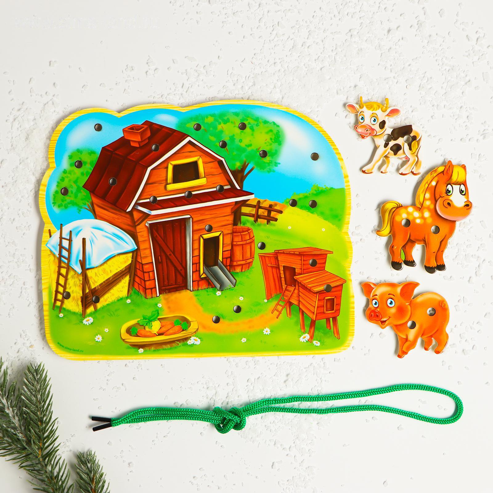 Шнуровка фигурная «Ферма» – это отличный тренажер для развития речи и подготовки руки к письму. Подходит для детей от двух лет – как раз тот возраст, когда дети начинают активно интересоваться всем вокруг, а особенно предметами с мелкими деталями, бусинками, веревочками и всем подобным. Шнуровка поможет вам обезопасить малыша и удовлетворить его естественные потребности.