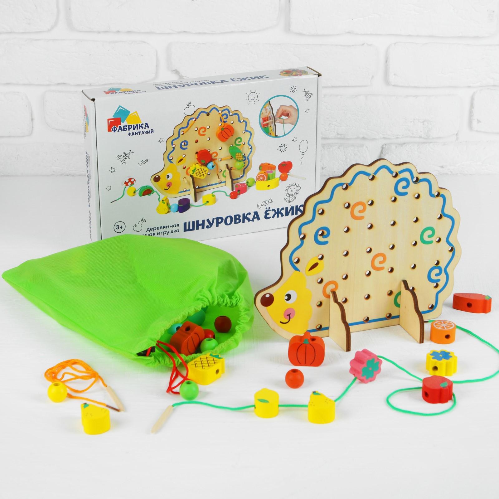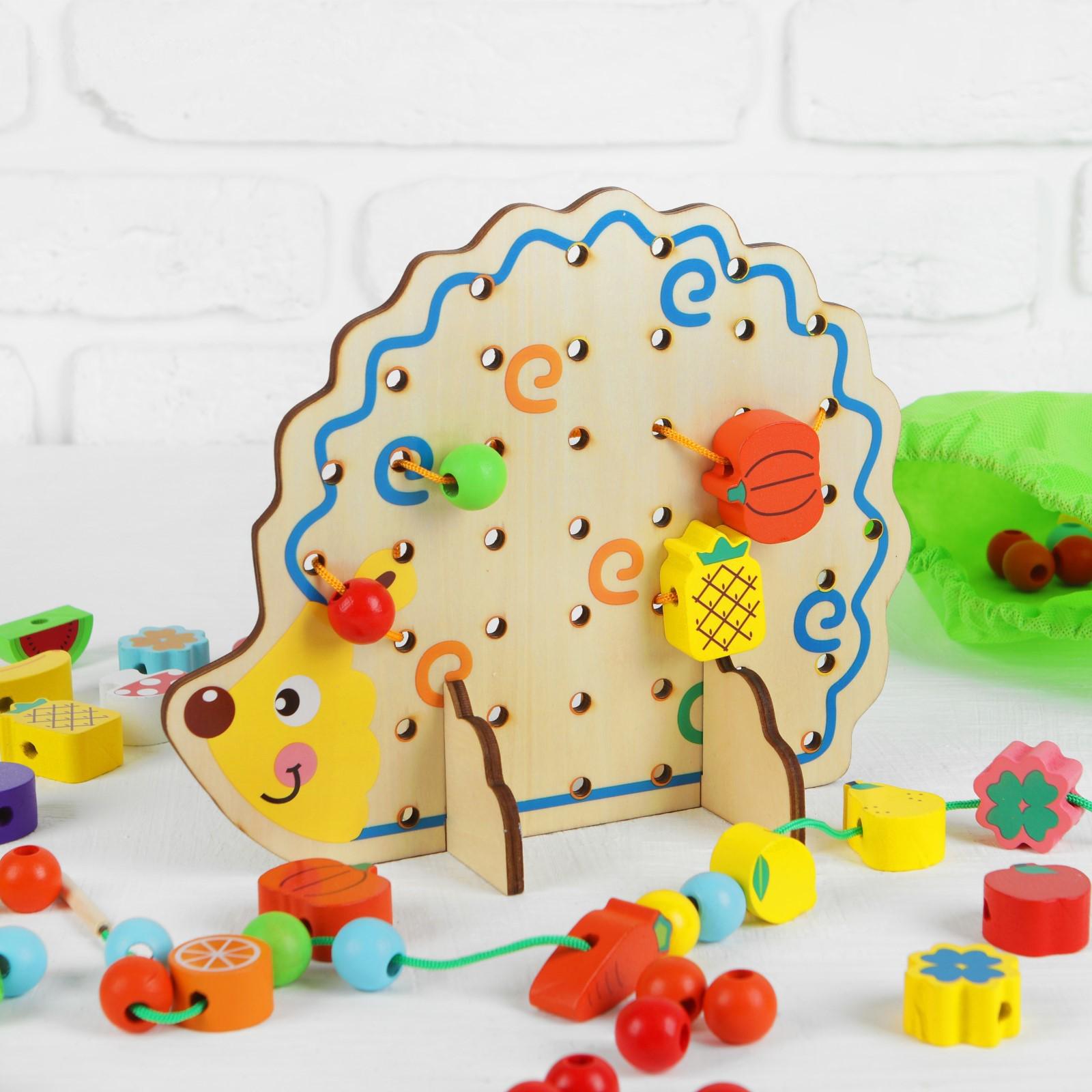 Шнуровка "Ёжик с поклажей", 82 элемента, 2 шнурка — 80 см, ёжик: 22 × 18,5 см, бусины: 4 × 2,5 см; 1,2 × 1,2 см