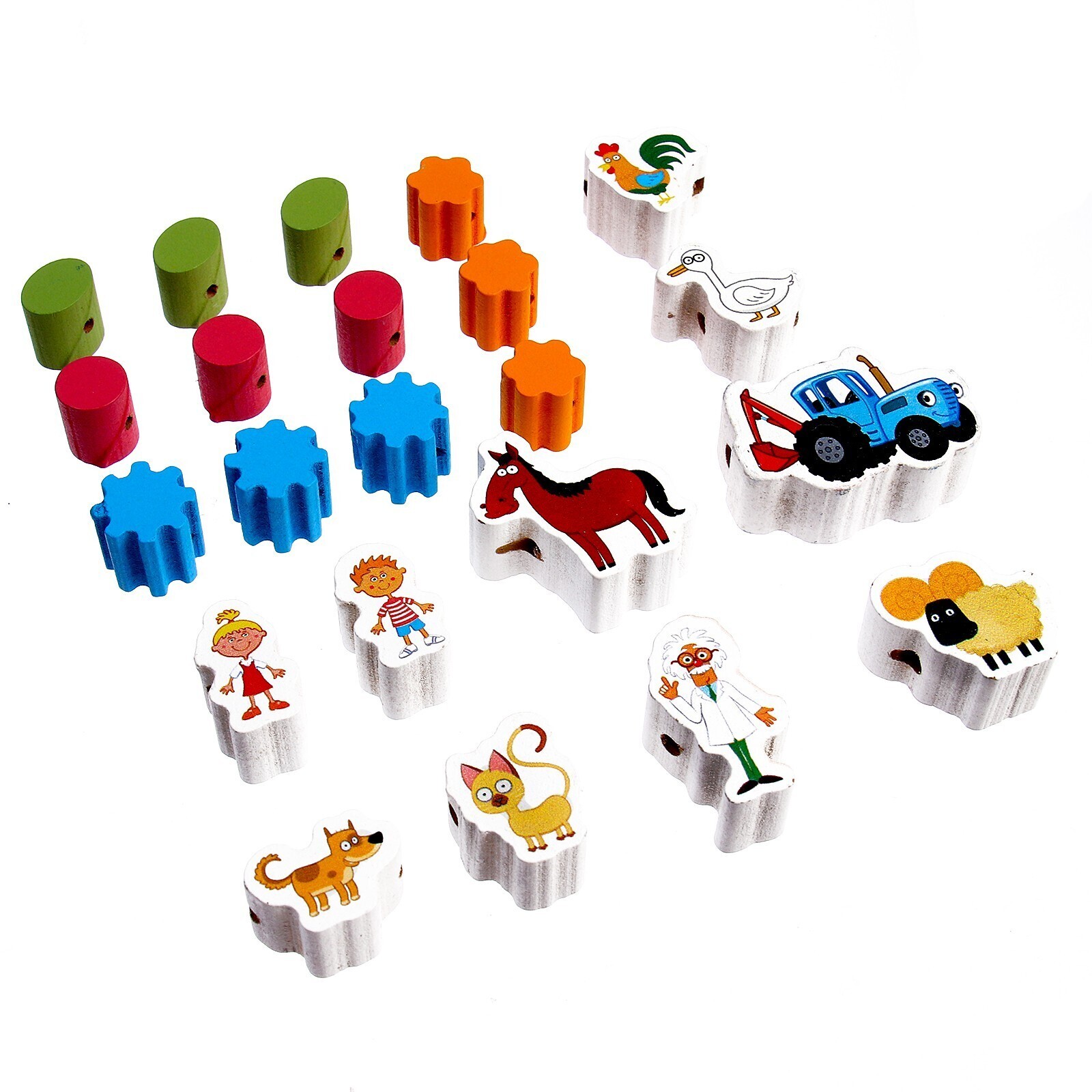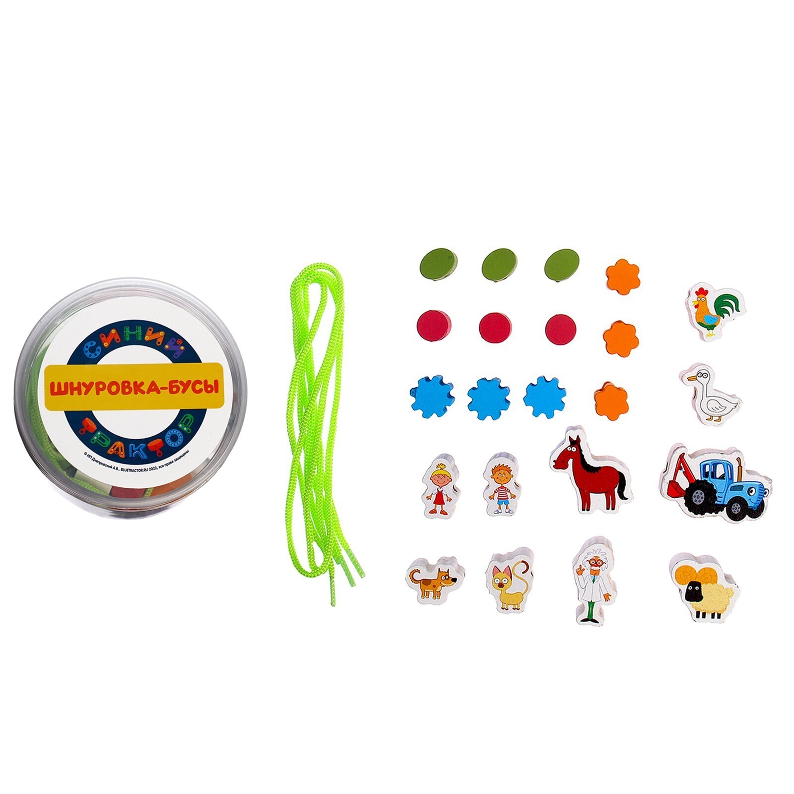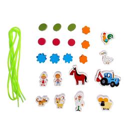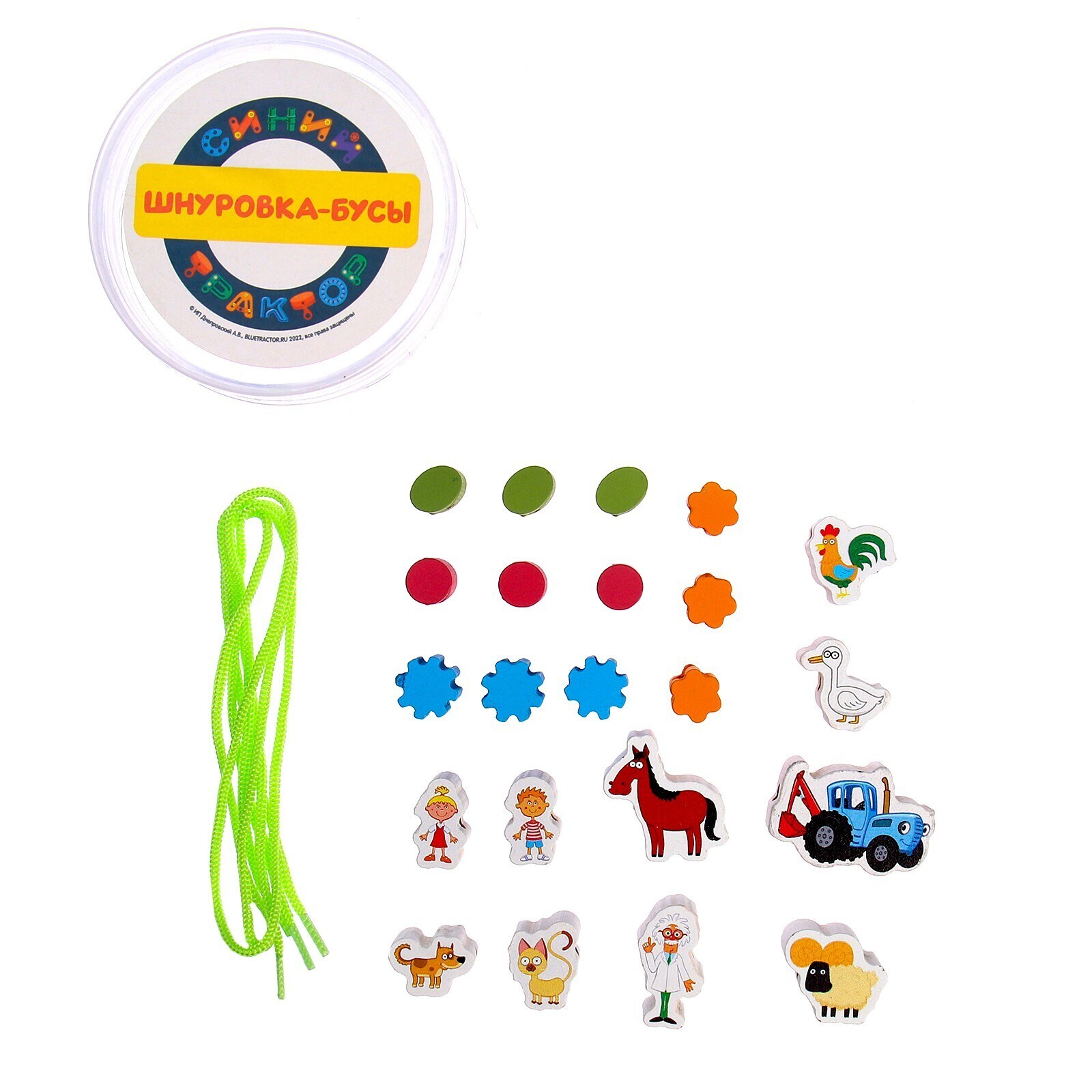 Игрушка деревянная шнуровка-бусы «Синий трактор»