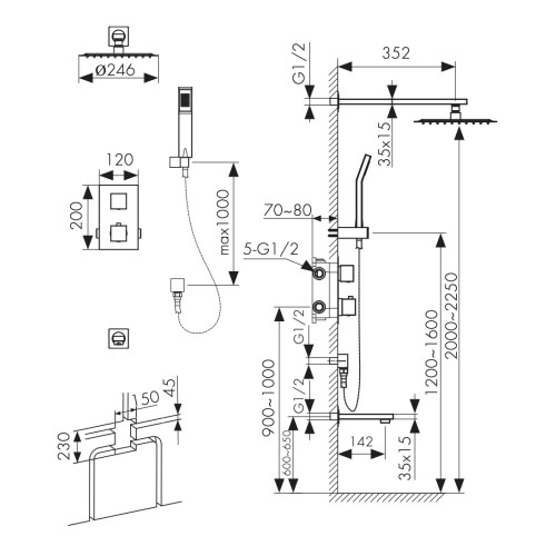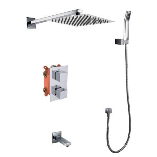 Смеситель однорычажный для скрытого монтажа с термостатом. В данной модели регулировка напора воды не предусмотрена. Напор воды устанавливается с помощью редукторов ХГВС. Разница давления ХГВС не должна превышать 10%. Рекомендованное рабочее давление от 3 до 5.