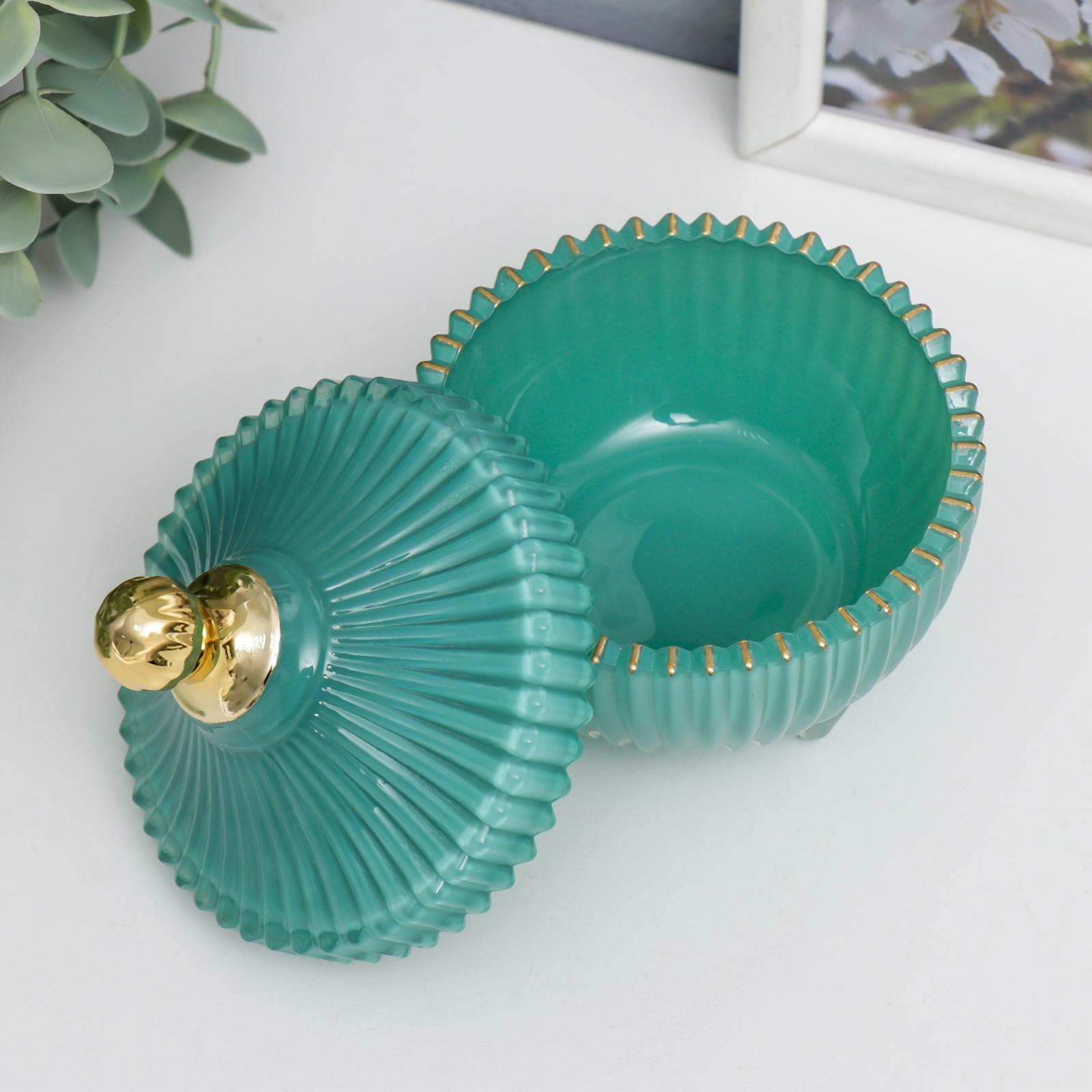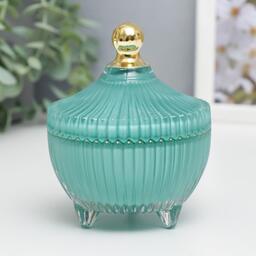 Шкатулка стекло "Гофре и купол" на ножках лазурный с золотом 11,5х9,5х9,5 см