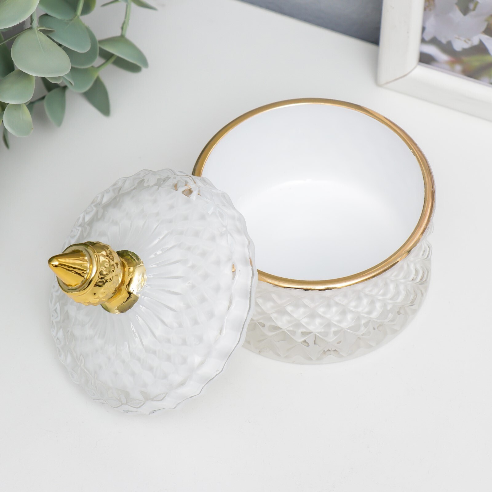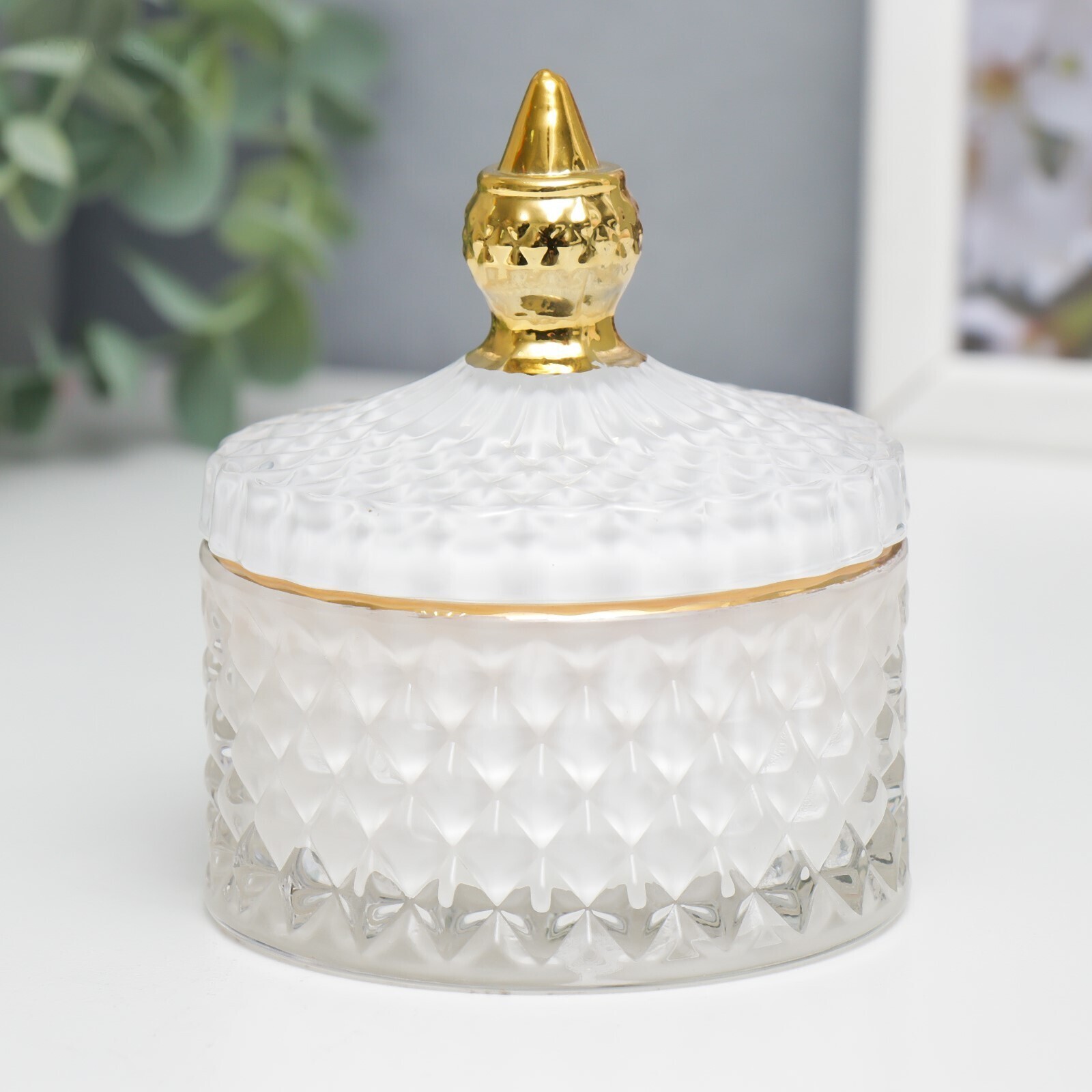Шкатулка стекло "Ромбы и купол" белый с золотом 11х8,5х8,5 см