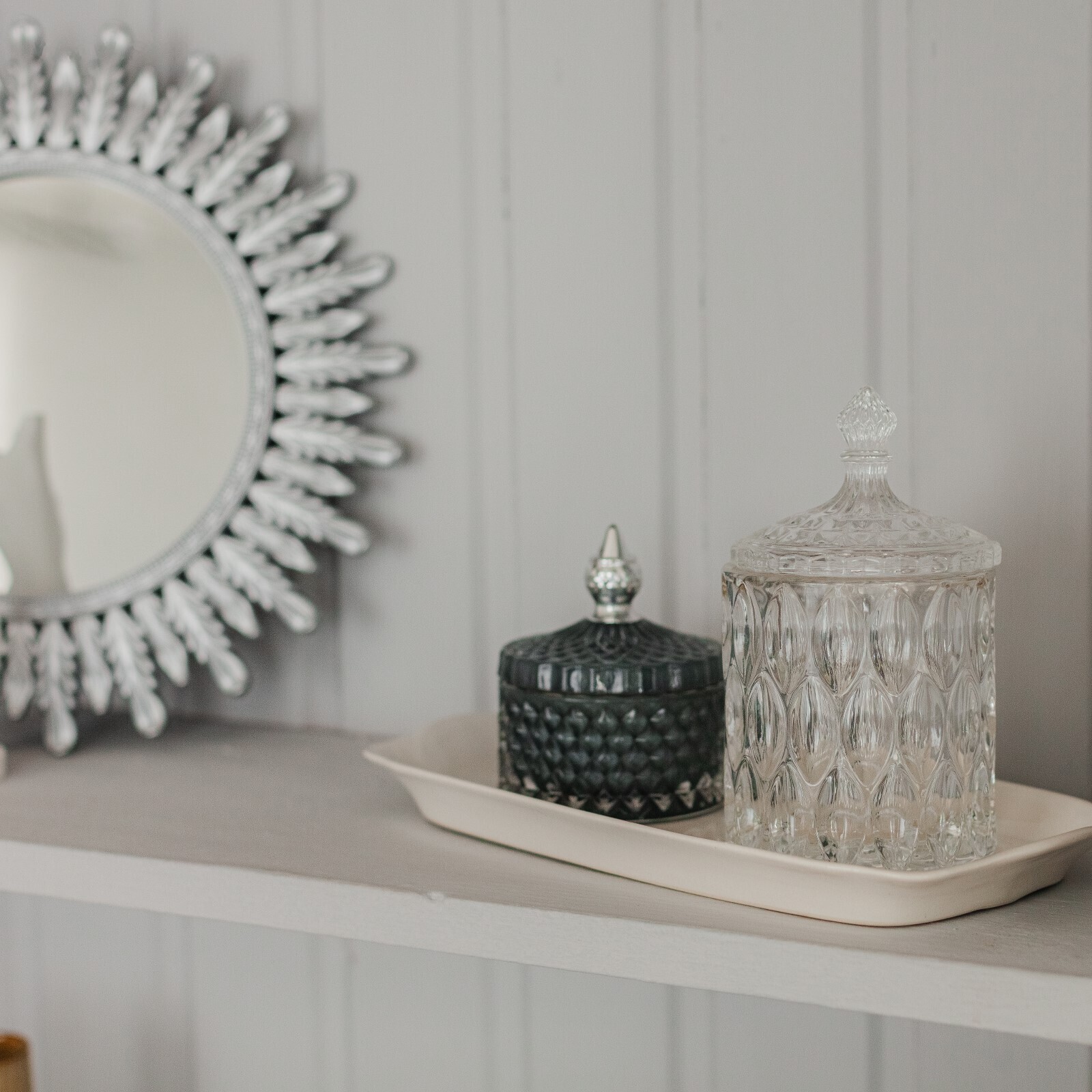 Шкатулка стекло "Ромбы и купол" серый с серебром 11х8,5х8,5 см