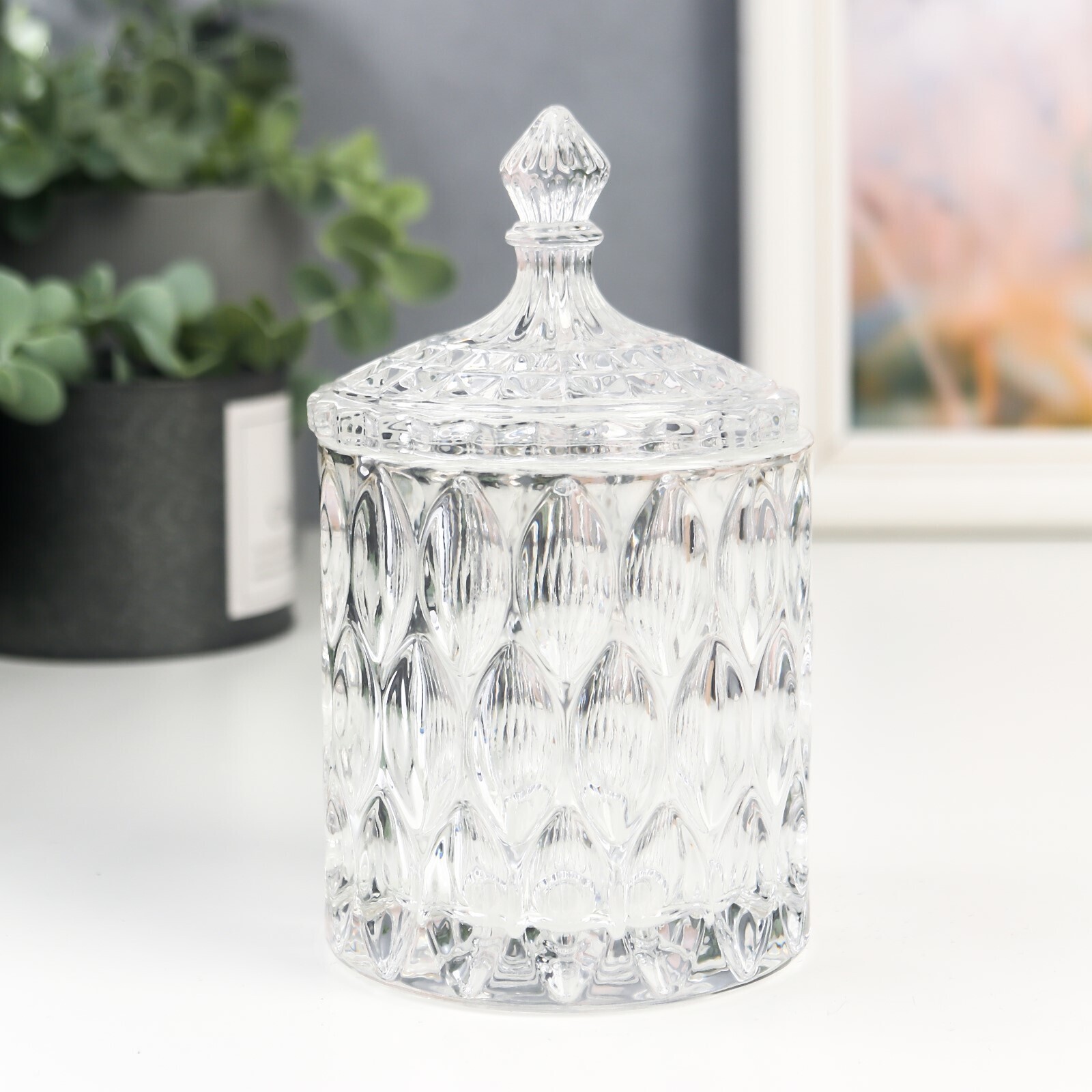 Шкатулка стекло цилиндр "Узоры и купол" прозрачный 16х8,5х8,5 см