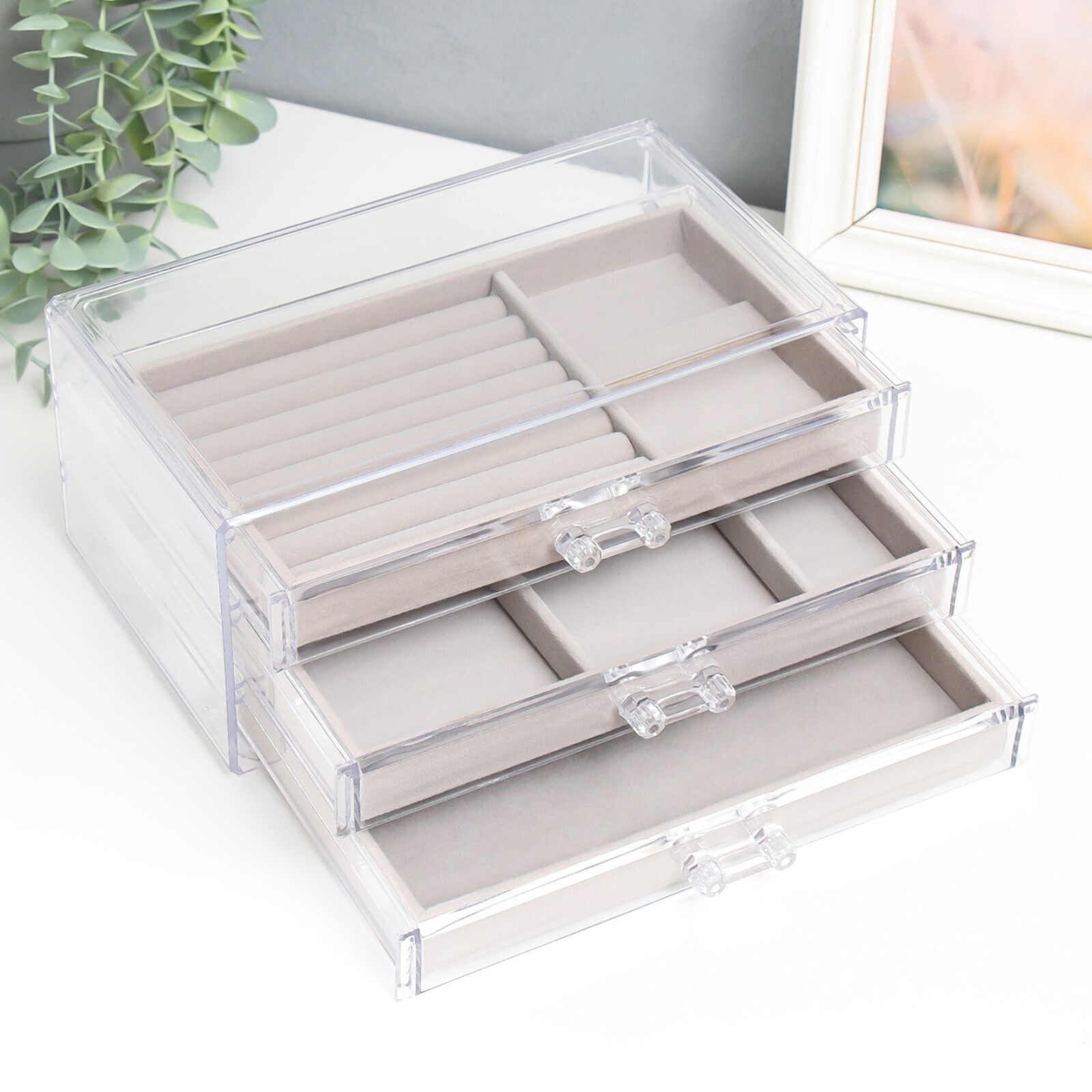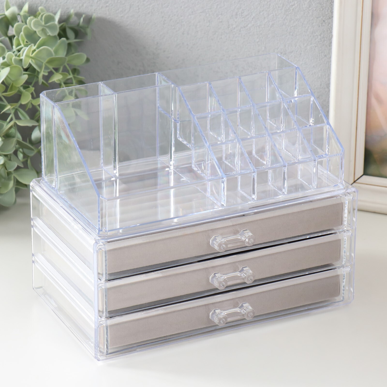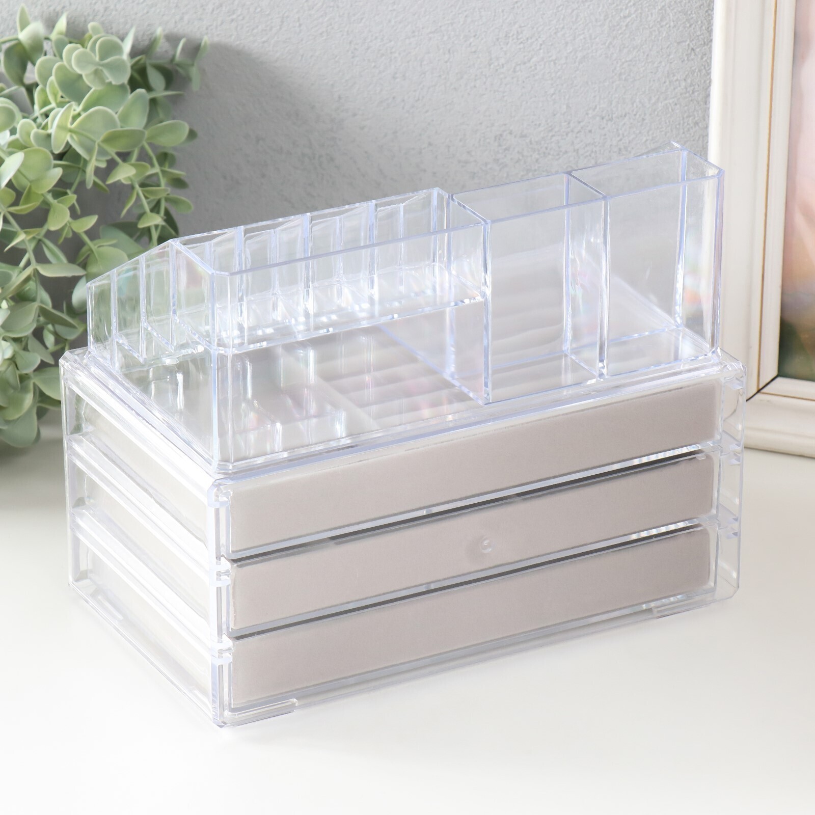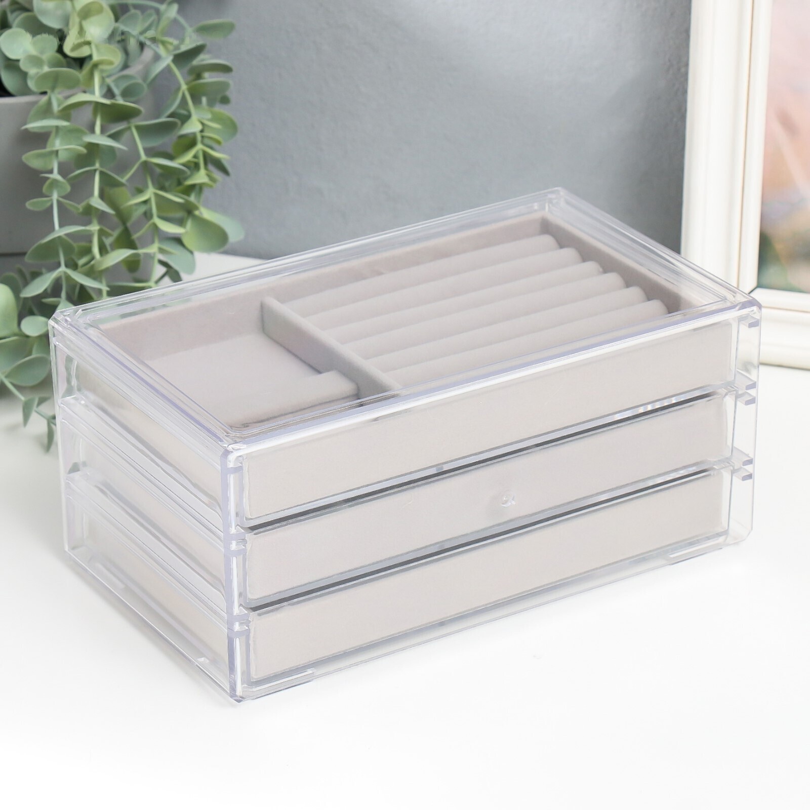 Шкатулка для украшений и косметики пластик "Три ящичка" 18,5х14х23 см