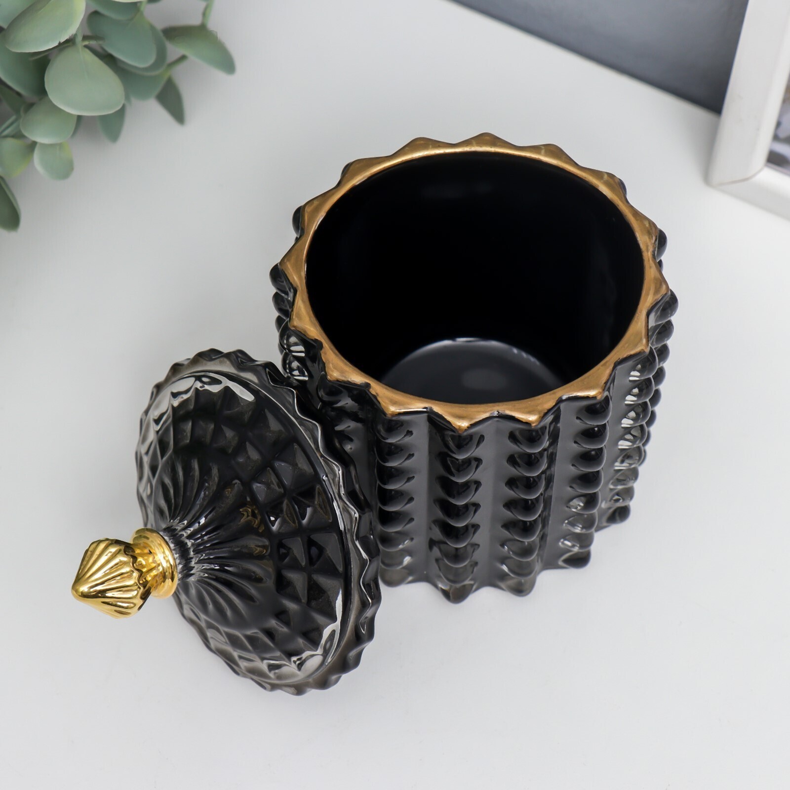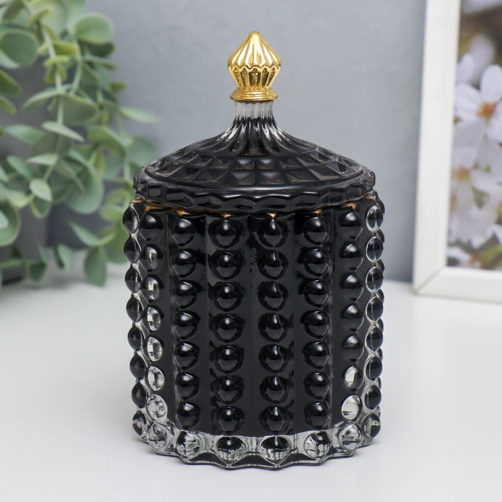 Шкатулка стекло цилиндр "Пузырьки и купол" чёрный с золотом 16х9х9 см