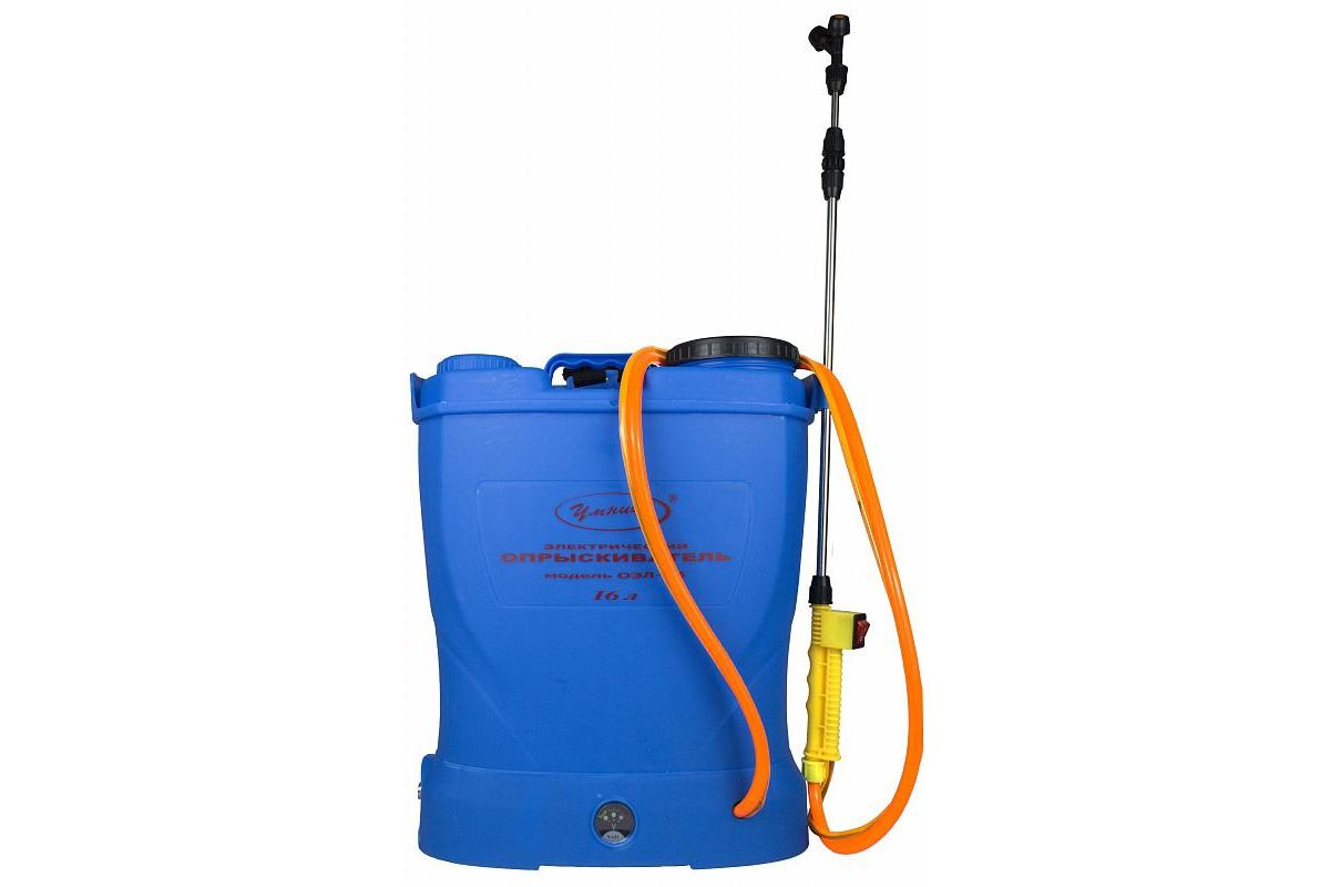 Электрический аккумуляторный опрыскиватель ''Умница'' ОЭЛ-16 предназначен для химической защиты растений от вредителей и болезней, борьбы с сорной растительностью, распыления воды, удобрений, гербицидов, пестицидов, противоэпидемической обработки скота и т.д.