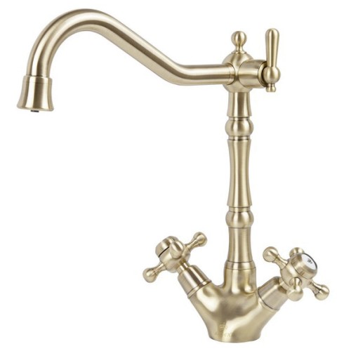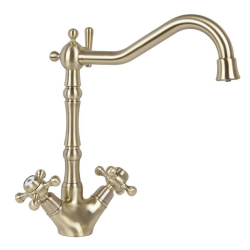 Смеситель Kaiser 44133-1 из коллекции Carlson Style с подключением под фильтр. Для подачи питьевой воды у основания излива размещен отдельный рычаг. Смеситель имеет сдвоенный аэратор, внутри излива проходит трубка для фильтрованной воды, что исключает возможность смешивания с проточной водой. Преимущество совмещенных смесителей заключается в том, что не нужно делать дополнительных отверстий на мойке и устанавливать отдельный кран для питьевой воды.