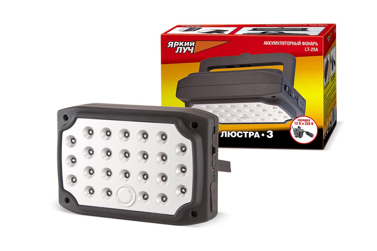 - 25 светодиодов, время работы до 2 часа при полностью заряженном аккумуляторе.
