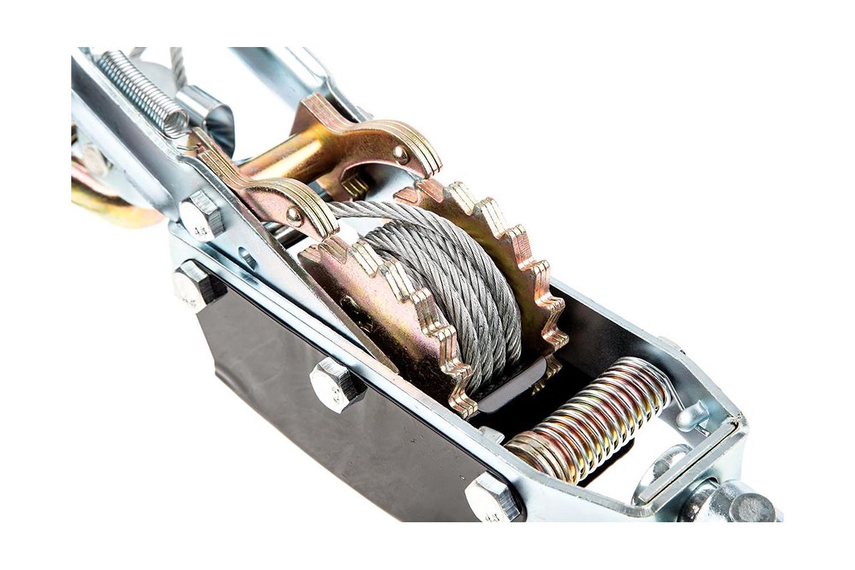 Для перемещения грузов по горизонтальной и наклонной плоскости. Механизм усилен двойной шестеренкой для троса. Симметричные шестеренки, не дают тросу застревать и съезжать в сторону. Стопор лебедки вынесен ближе к рычагу и находится дальше от шестеренки, что более удобно и безопасно. Переключатель реверса, позволяет ослаблять натяг постепенно. Упаковка: картонная коробка. 4000 кг, трос 3 м.