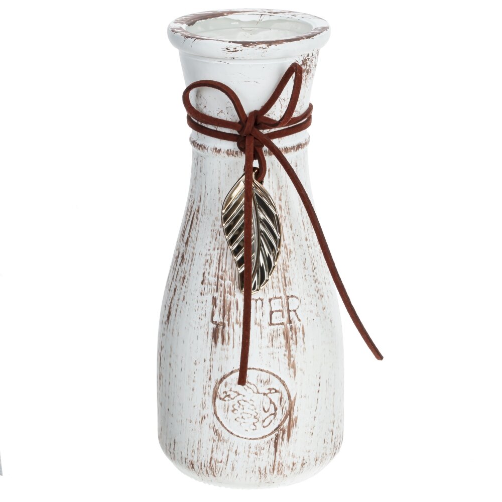Стеклянная ваза с эффектом потертости, с декоративным шнурком и подвеской в виде листика, настолько красива и необычна, что сможет самостоятельно украсить интерьер и без цветов. Разместите эту модель у себя в доме - и она станет дивным элементом декора. Диаметр горловины: 3 см.