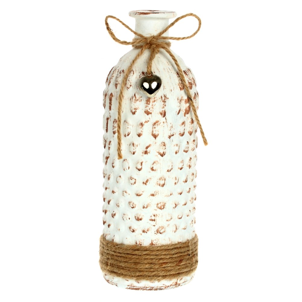 Стеклянная ваза с рельефной поверхностью, декоративным шнурком и подвеской в виде сердечка, настолько красива и необычна, что сможет самостоятельно украсить интерьер и без цветов. Разместите эту модель у себя в доме - и она станет дивным элементом декора. Диаметр горловины: 2 см.