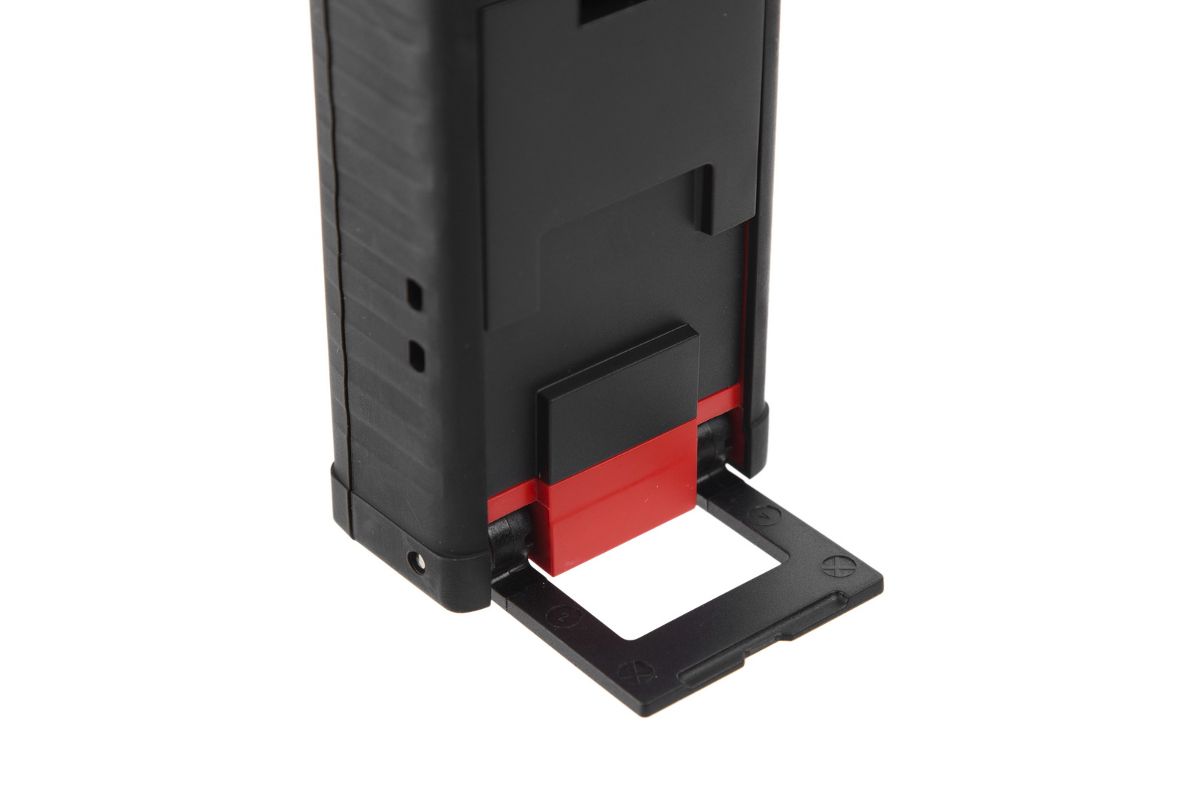 Может измерять расстояния на краю и из угла с помощью выдвижной скобы;