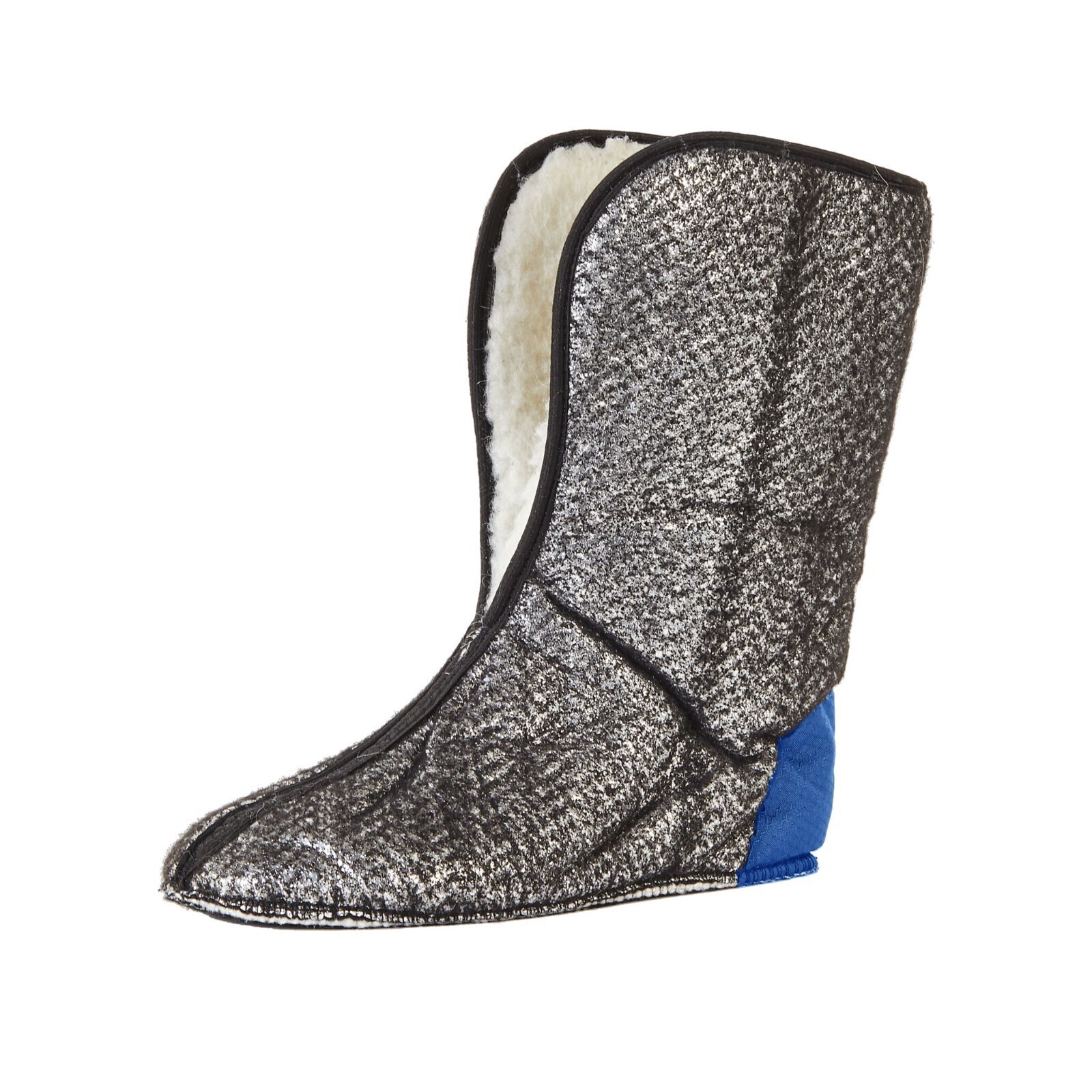 Сапоги cделаны из материала EVA, имеют вынимаемый вкладыш, обеспечивают термозащиту в динамике при температуре до –45°С. Удобная амортизирующая колодка, позволяет преодолевать большие расстояния по снегу или льду с минимальными физическими затратами и нагрузками на суставы и позвоночник. Конструкция подошвы, без выраженного каблука, увеличивает сцепление и устойчивость на снегу и льду. Внутреннее строение подошвы имеет «вафельную структуру», позволяющая собирать конденсат с вкладыша, если он образовался. Пятислойный вкладыш, толщиной 20 мм, обеспечивает термоизоляцию и отвод влаги от тела. 70% искусственный мех, 30% натуральной овечьей шерсти – термозащита и отвод влаги от ног. Трикотажно-гидрофобное волокно – мембрана для отвода влаги. Нетканое полотно – сохраняет форму вкладыша. Металлизированная перфорированная фольга – отражает холод наружу, а тепло к ноге. Мембранная защитная сетка – сохраняет целостность фольги. Материал Oxford 600 - повышает износостойкость пяточной части вкладыша.