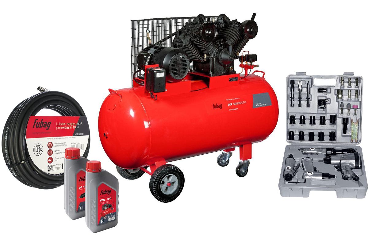 Набор FUBAG Компрессор DCF-1300/500 CT11 +Масло компрессорное VG 46 838271 +Масло компрессорное VDL 100 +Шланг 170101 +Набор пневмоинструмента 120103