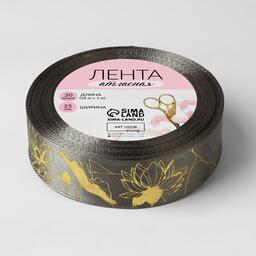 Лента атласная с тиснением «Лотос», 25 мм × 18 ± 1 м, цвет тёмно-серый/золотой №189
