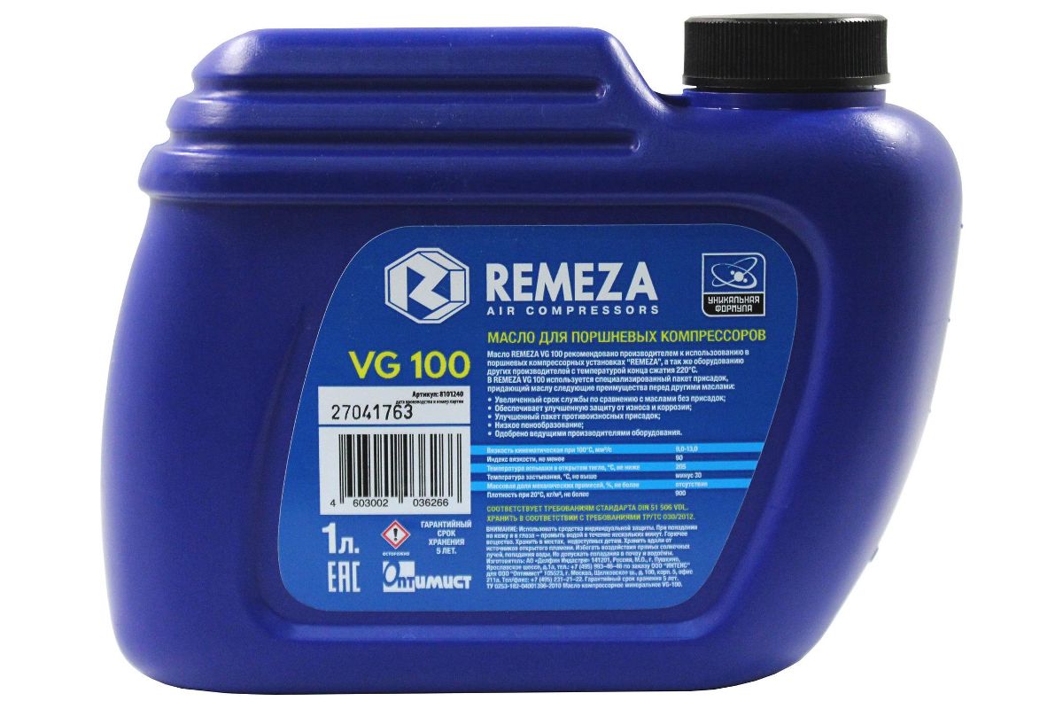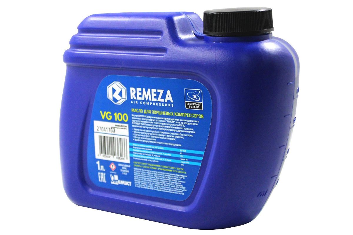 Масло компрессорное REMEZA VG 100 1л Специализированное масло REMEZA VG 100 - используется преимущественно для поршневых компрессоров, 1л