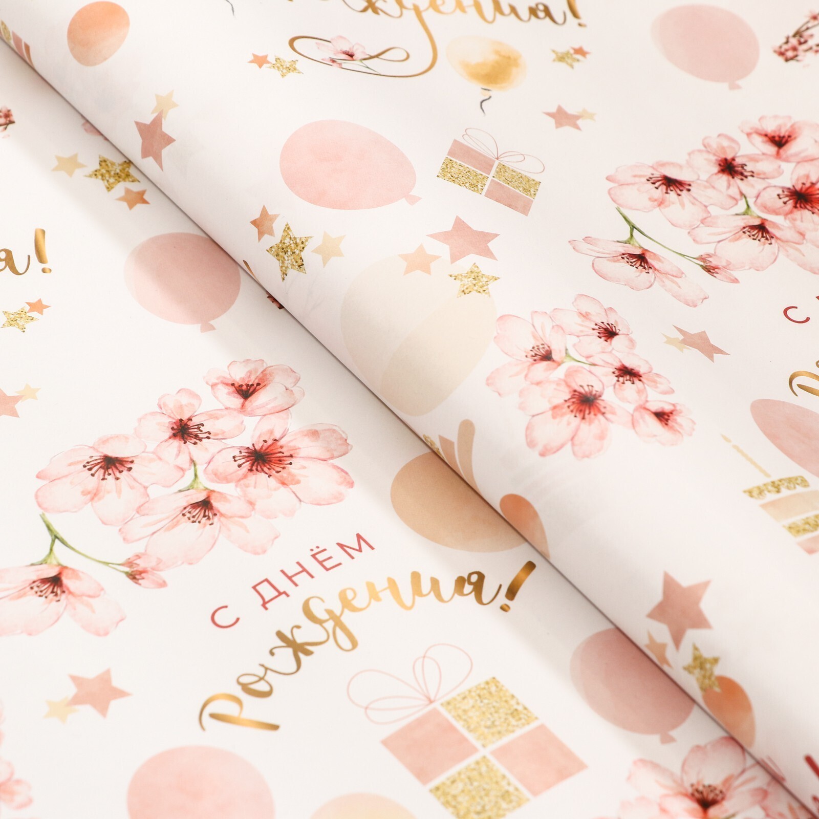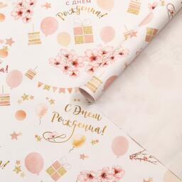 Бумага упаковочная,глянцевая "Цветочное поздравление", 70 х 100 см, 1 лист