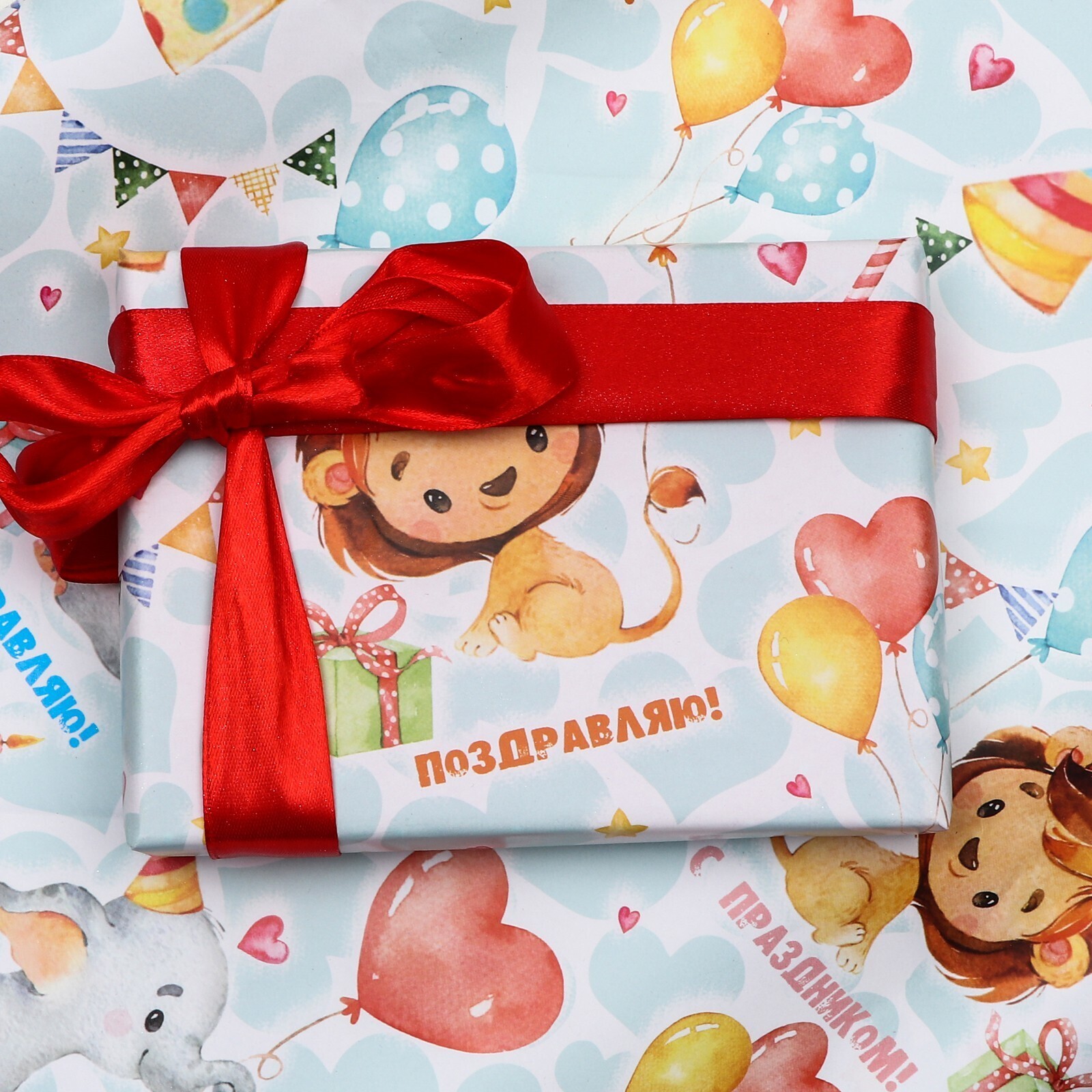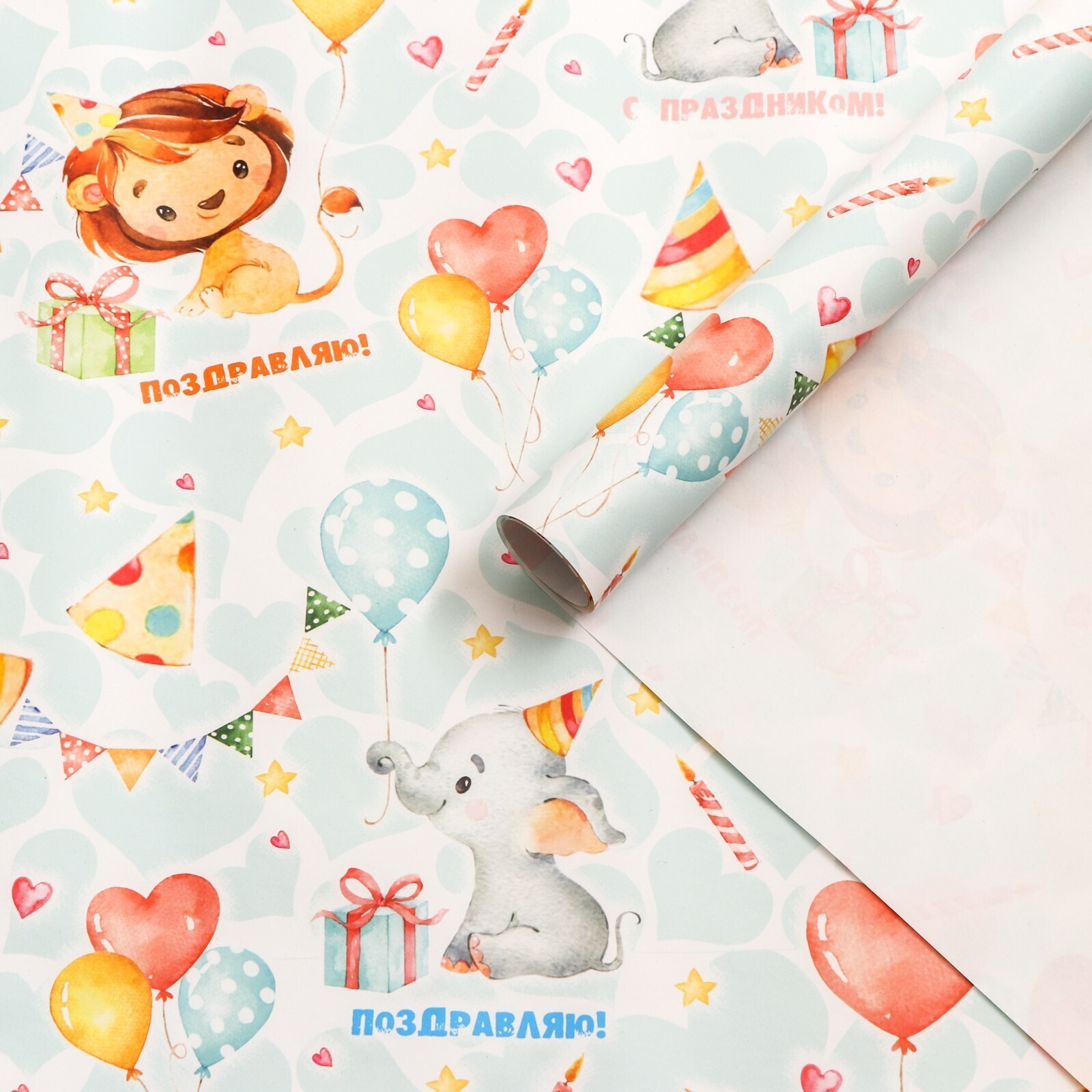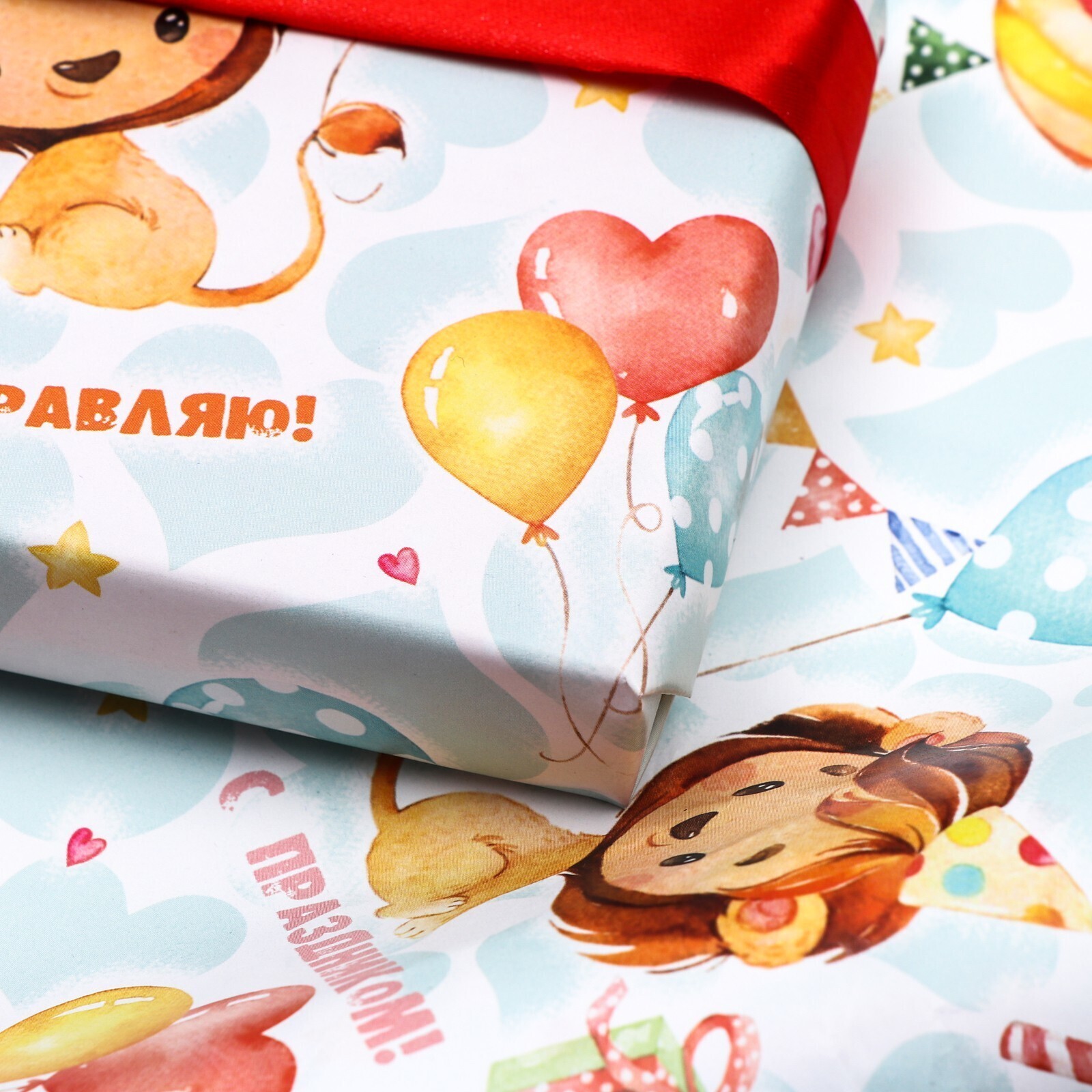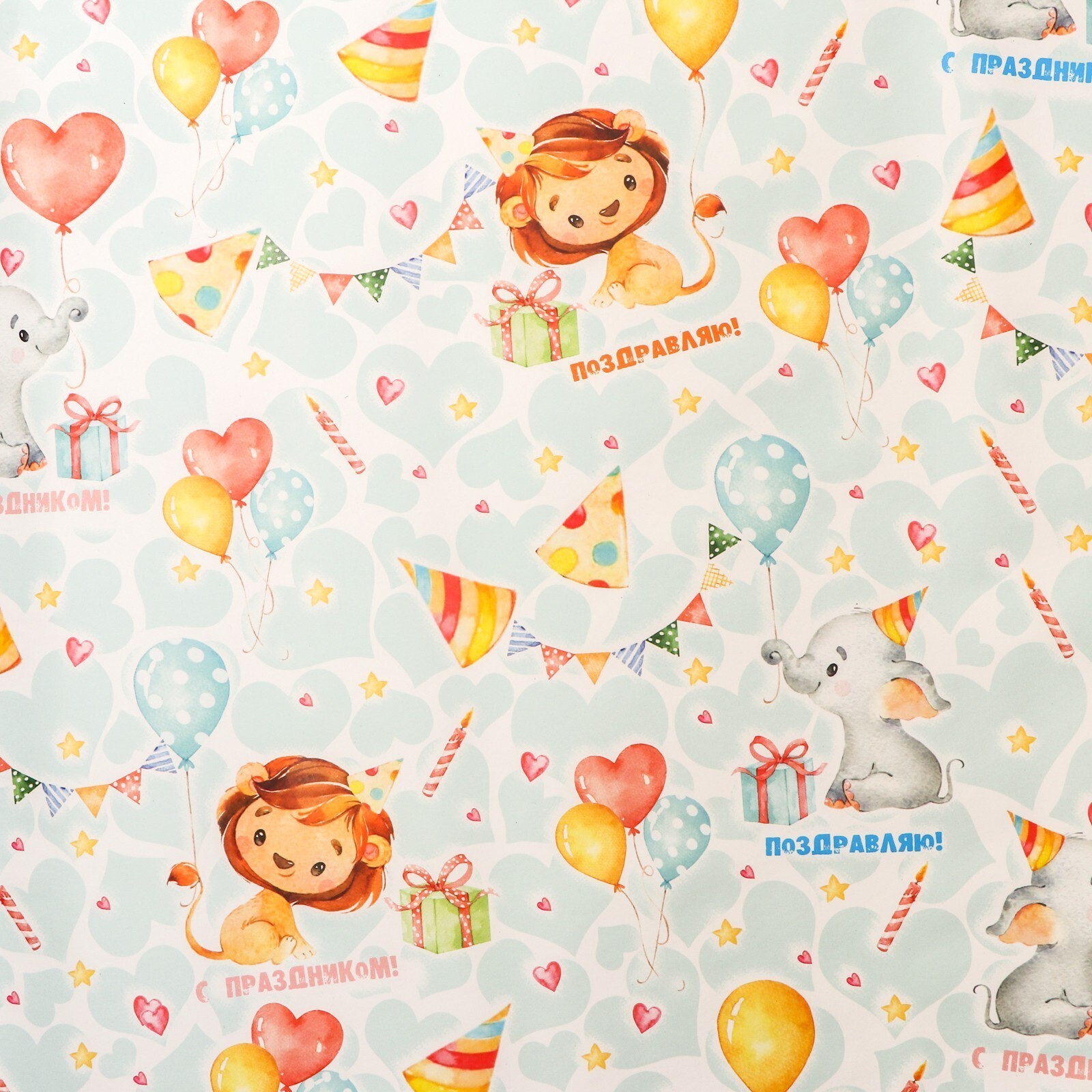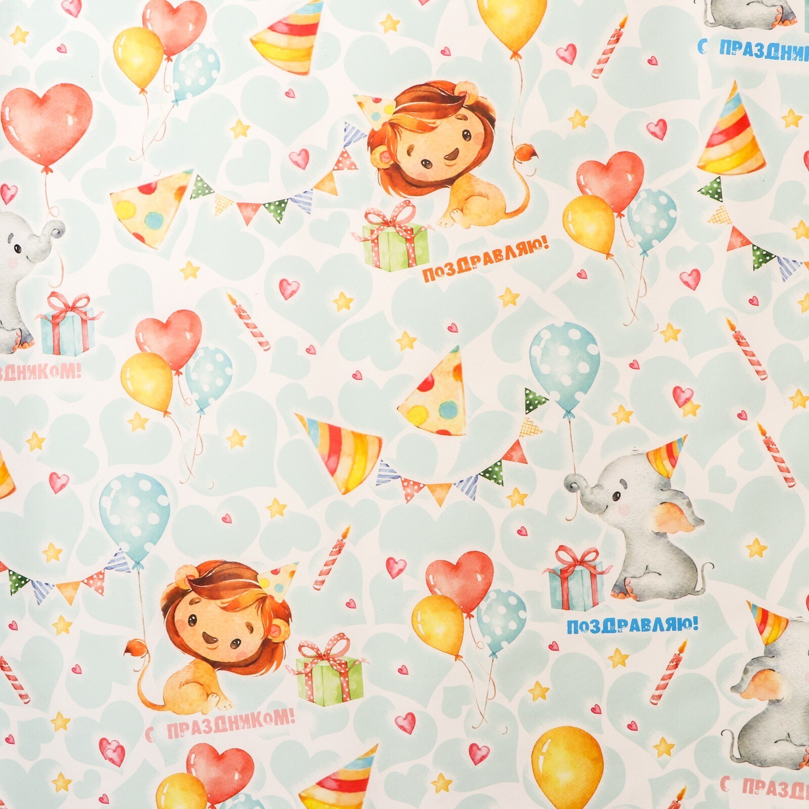 Бумага упаковочная,глянцевая "Зверушки", 70 х 100 см, 1 лист