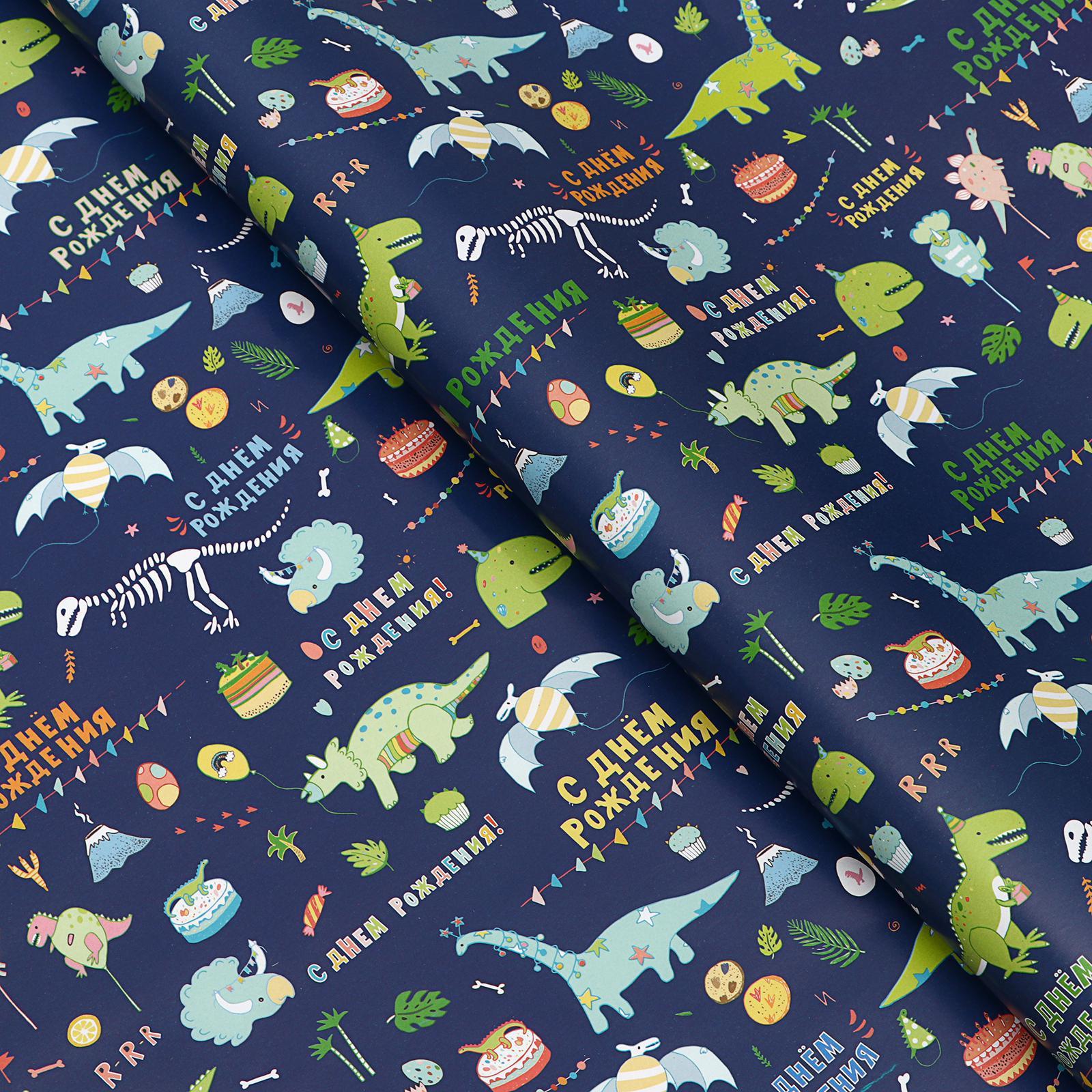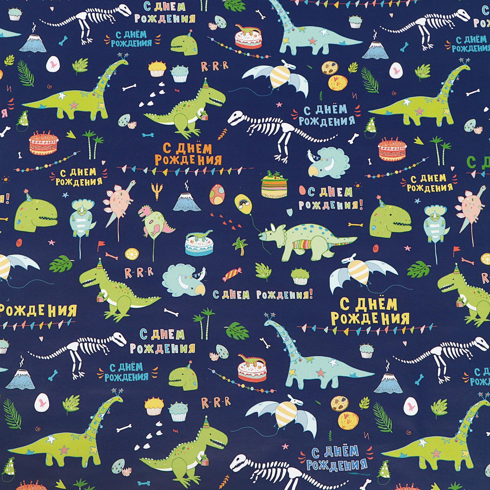 Бумага упаковочная глянцевая "С днем рождения!", 70 х 100 см