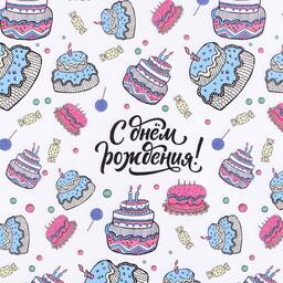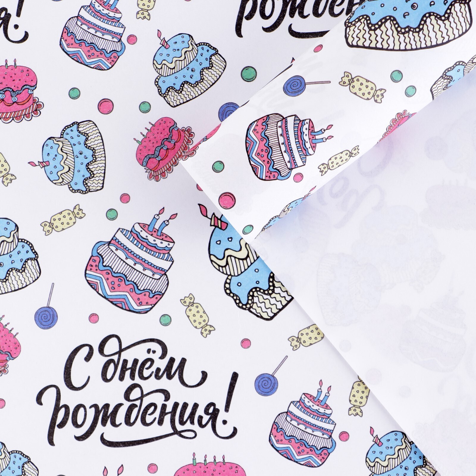 Бумага упаковочная крафтовая «С Днём Рождения», 70 × 100 см