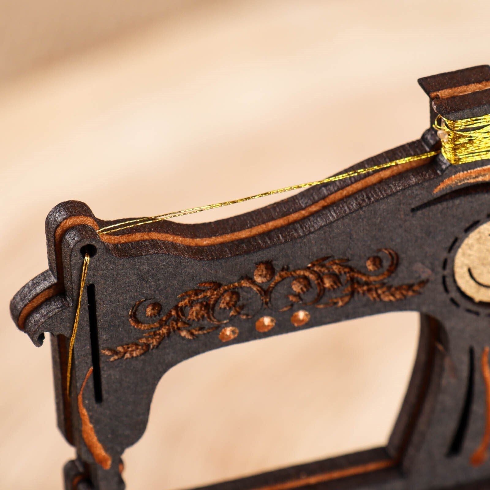 Сувенир-игольница "Швейная машинка", МДФ, Дуб-черный, 7,5х5,5х12,5 см