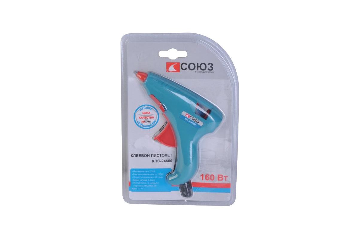 Пистолет клеевой СОЮЗ КПС-24600 160Вт, d7мм, 8 г/мин, 2 стержня в компл, блистер