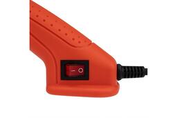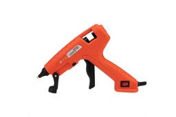 Принцип работы: клеевой стержень плавится в металлической камере с помощью нагревательного устройства и для точного дозирования при нажатии на курок подается из сопла на склеиваемую поверхность. Мощность пистолета позволяет очень быстро разогреть клеевой стержень и получать удовольствие от быстрой и бесперебойной работы. С его помощью вы сможете склеить: дерево, пластик, резину, кожу, стекло, металлы (их лучше перед работой разогревать феном), ткань, пенопласт, керамику, картон, бумагу, цветы или что-то другое.