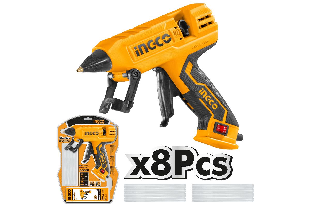 Термоклеевой пистолет 220 Вт INGCO GG308 INDUSTRIAL идеально подходит для склеивания поверхностей, склеивания частей моделек, ремонта, герметизации и расшивки.