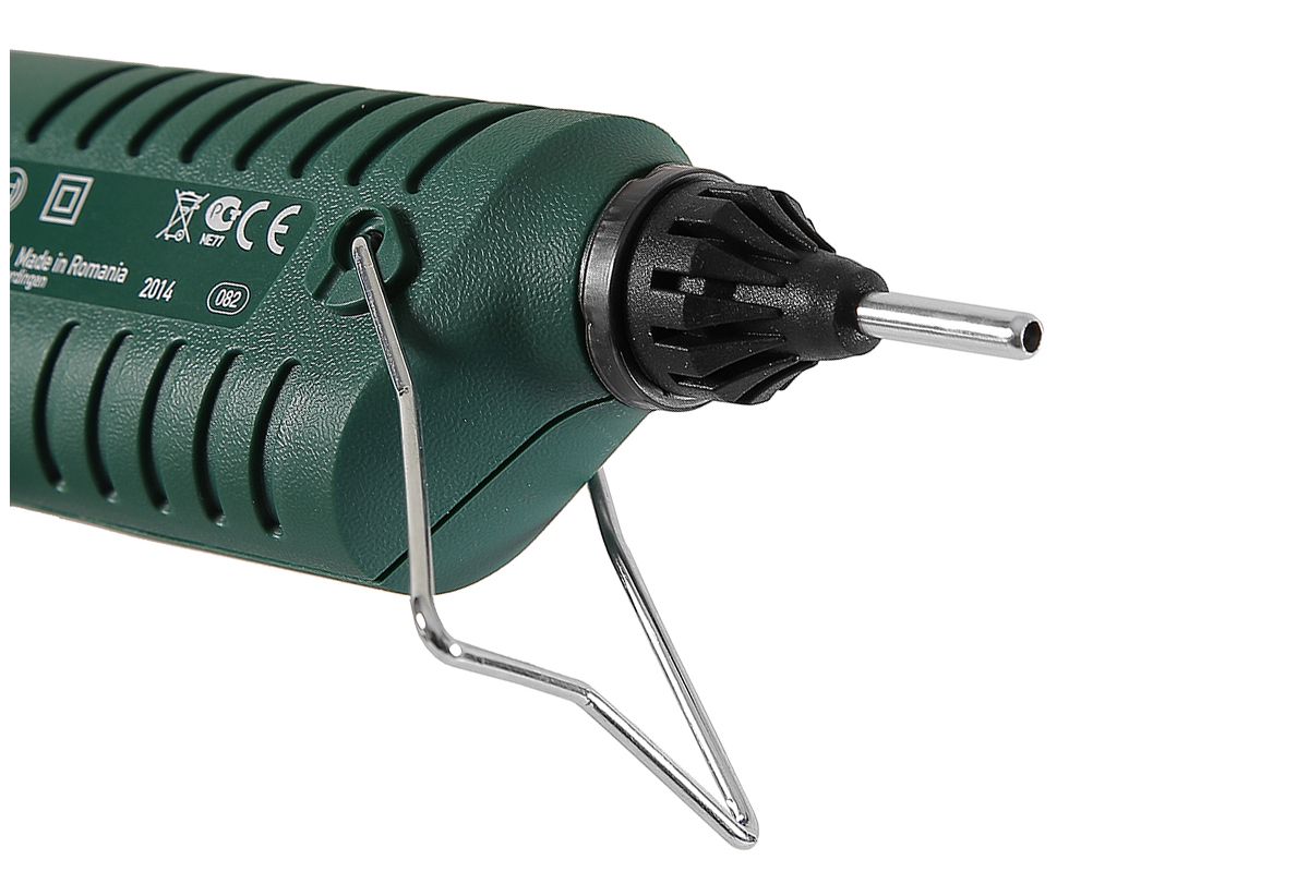 Готовность пистолета к работе практически мгновенная – за скорость разогрева отвечает система электронной регулировки и стабилизации температуры. Благодаря ее использованию клеевая заготовка постоянно находится в подогретом состоянии (режим предварительного подогрева) и, при необходимости, расплавляется за считанные секунды. Усиливает эффективность работы пистолетом и применение в его конструкции очень длинной форсунки. Включение и работа осуществляются одной клавишей -«курком».