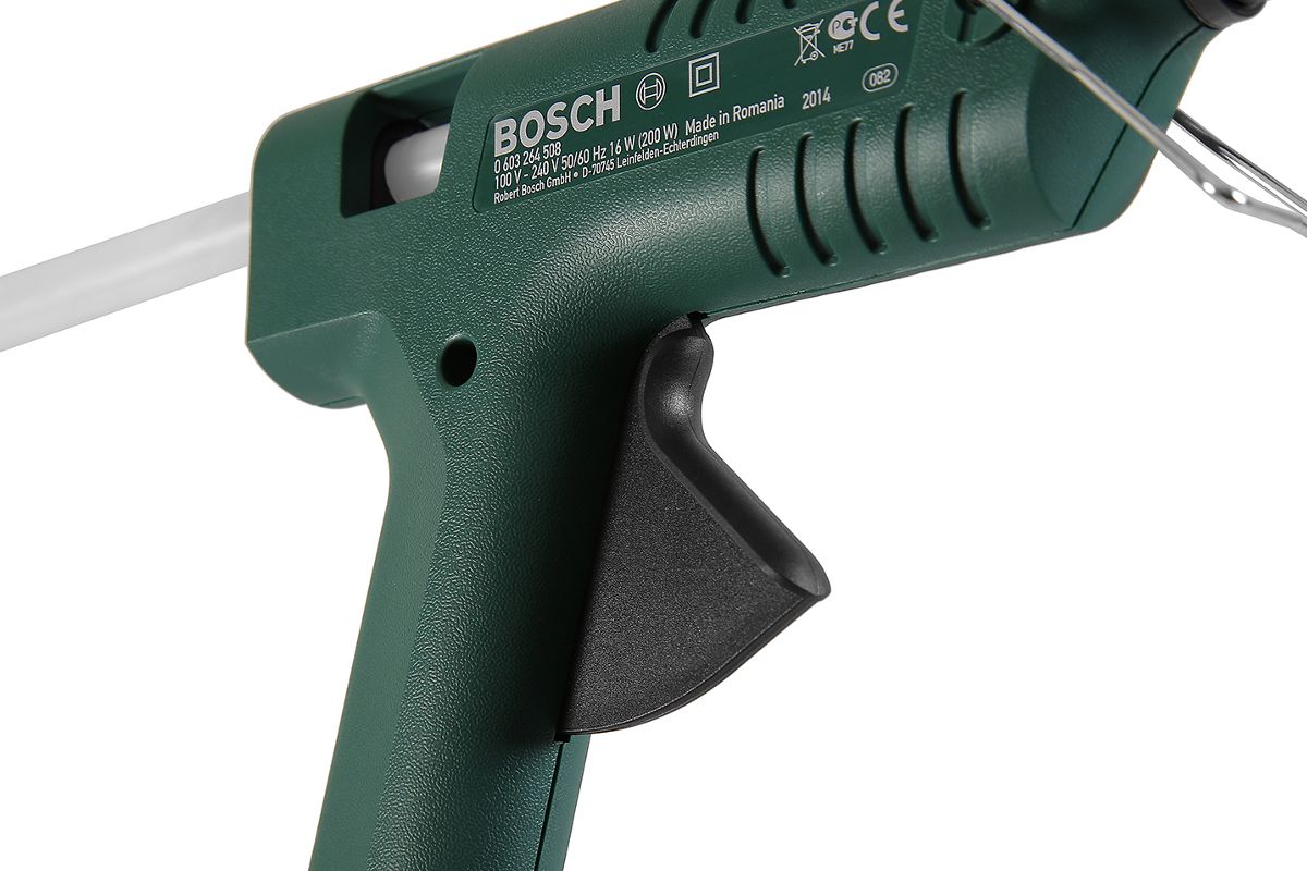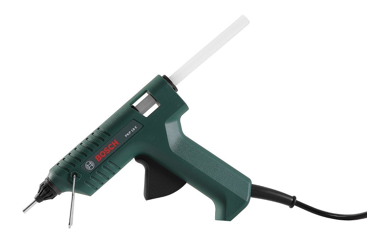 Клеевой пистолет Bosch РКР 18 Е предназначен для склеивания между собой всевозможных материалов – пластмассы, дерева, керамики, стекла и металла, кожи или текстиля – в самых различных сочетаниях. Устройство может использоваться не только для фиксации деталей, но и для создания уплотнительного слоя или заделывания швов. Пистолет ориентирован в основном на бытовое использование, однако вполне может применяться и на небольших производствах.