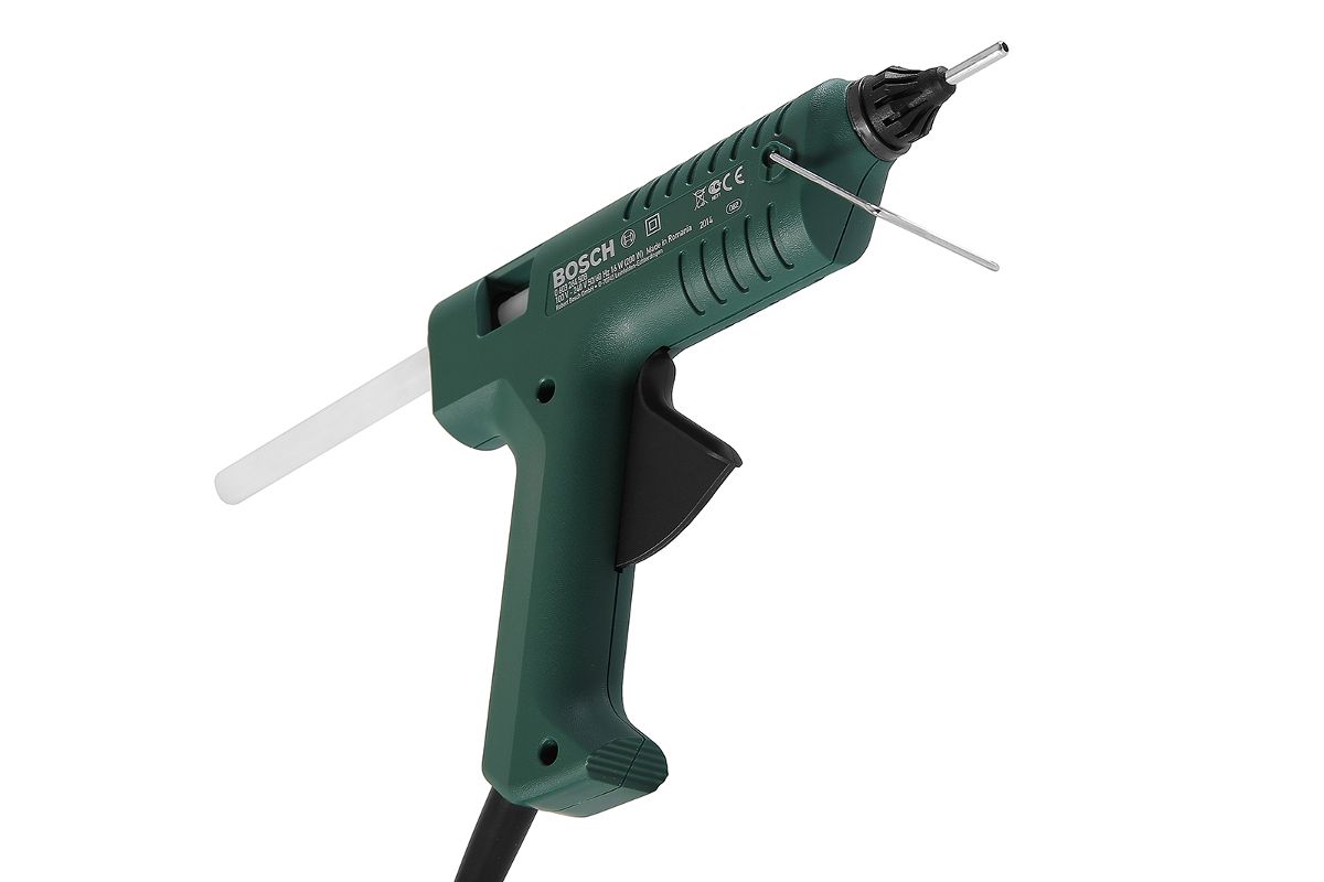 Для работы клеевого пистолета Bosch РКР 18 Е используются стандартные клеевые стержни («карандаши»), имеющие диаметр 11 мм и длину от 45 до 200 мм. Конструкция форсунки исключает капание клея в рабочей зоне и гарантирует чистоту рабочей поверхности. При использовании указанных клеевых стержней производительность работы пистолетом составляет не менее 20 г в минуту.