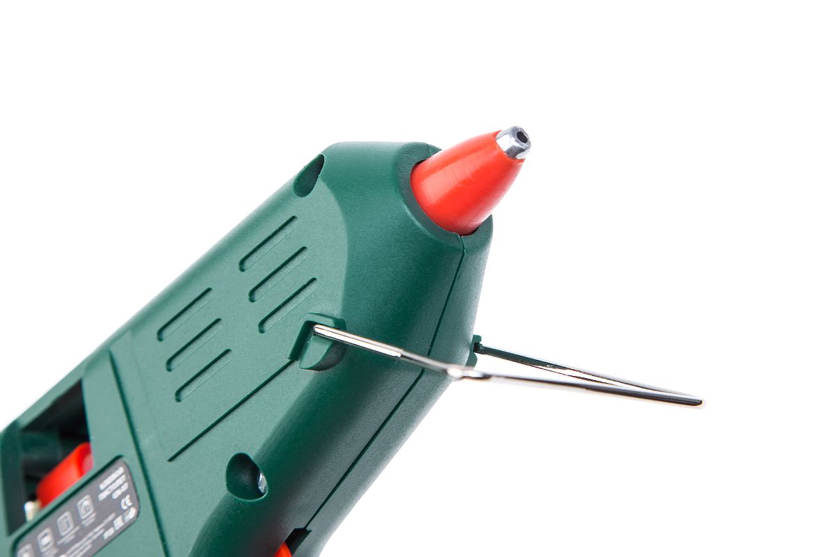 Металлическая опора пригодится, чтобы поставить пистолет на пол или стол. Горячее сопло не испортит поверхность.