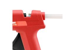 - Корпус клеевого пистолета изготовлен из ударопрочной пластмассы и имеет скобу для надежной установки в нерабочем положении.