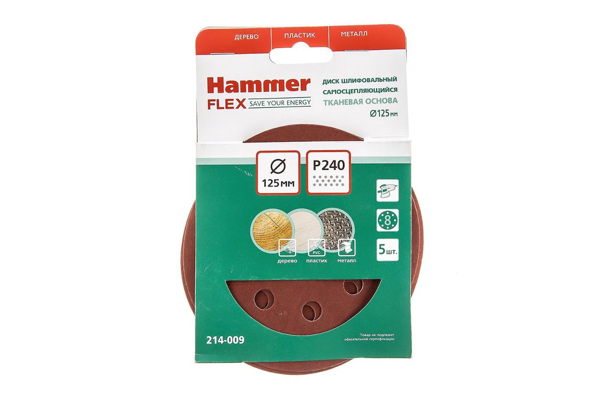 Круг шлиф.самосцепляющийся Hammer 214-009 Д125мм P240 8отв. цена за упаковку 5шт