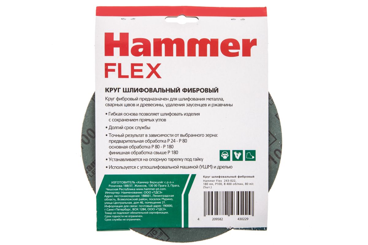 Круг шлифовальный фибровый Hammer Flex 243-022, 180мм, P100, 8400 об/мин, 80м/с (5шт) Круг шлифовальный фибровый Hammer Flex 243-022, 180мм, P100, 8400 об/мин, 80м/с (5шт)