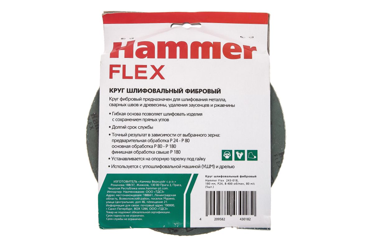 Круг шлифовальный фибровый Hammer Flex 243-018, 180мм, P24, 8400 об/мин, 80м/с (5шт) Круг шлифовальный фибровый Hammer Flex 243-018, 180мм, P24, 8400 об/мин, 80м/с (5шт)