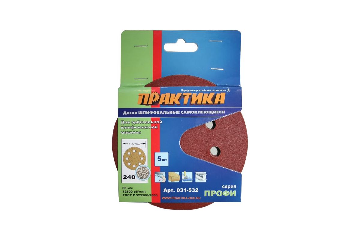 Круг фибровый (цеплялка) ПРАКТИКА 031-532 125мм P240 8отв. набор 5 шт цена за комплект